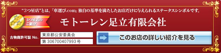 ★★ 落札価格は消費税込みとなります!★★弊社、モトーレン足立(有)は、輸入車販売のプロショップでございます。新、中古車の販売、保険事業、レンタカー事業、法定点検整備や車検、カスタムなどお車の事なら何でもお任せ下さいませ。