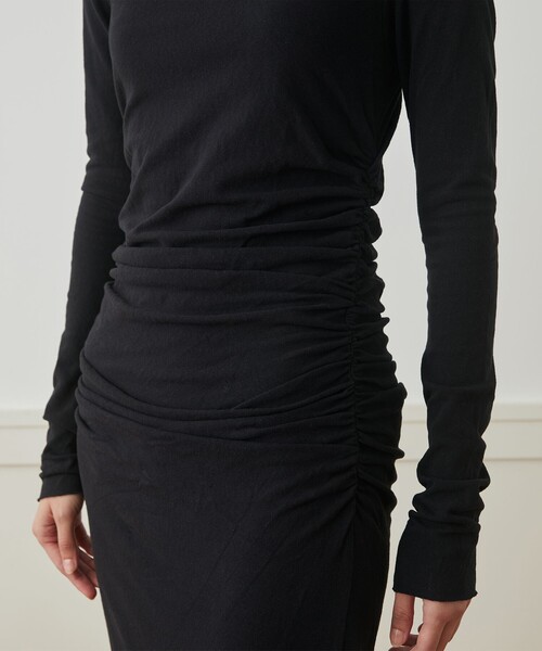 キーワード:ワンピース タイト ミモレ丈 長袖 無地