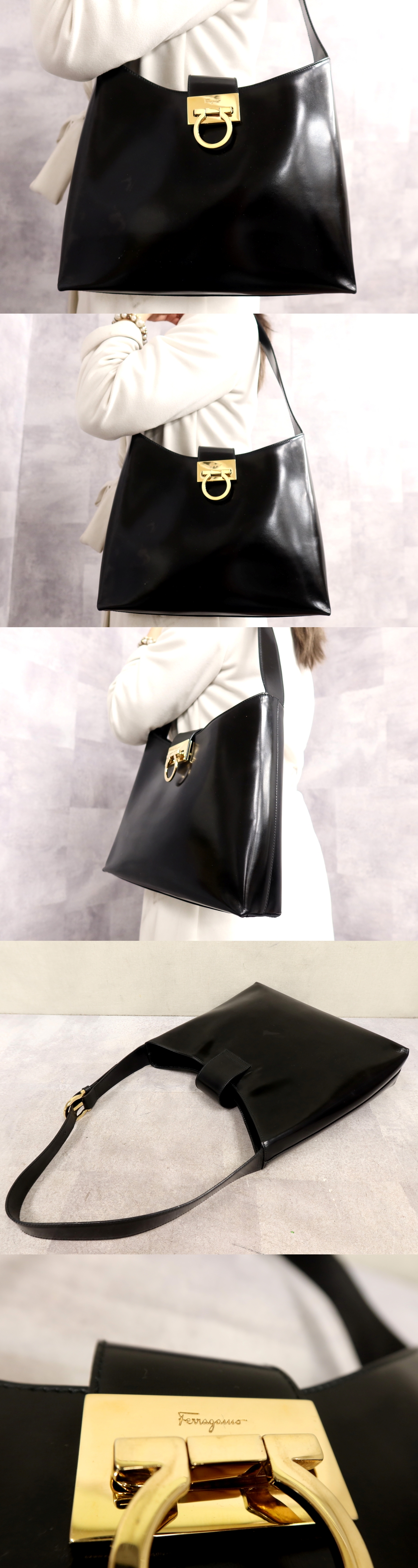 Product name: ●超美品●Salvatore Ferragamo フェラガモ●ガンチーニ●カーフ レザー 本革●ショルダー バッグ●黒●ゴールド金具●肩掛け●B5●Js65388