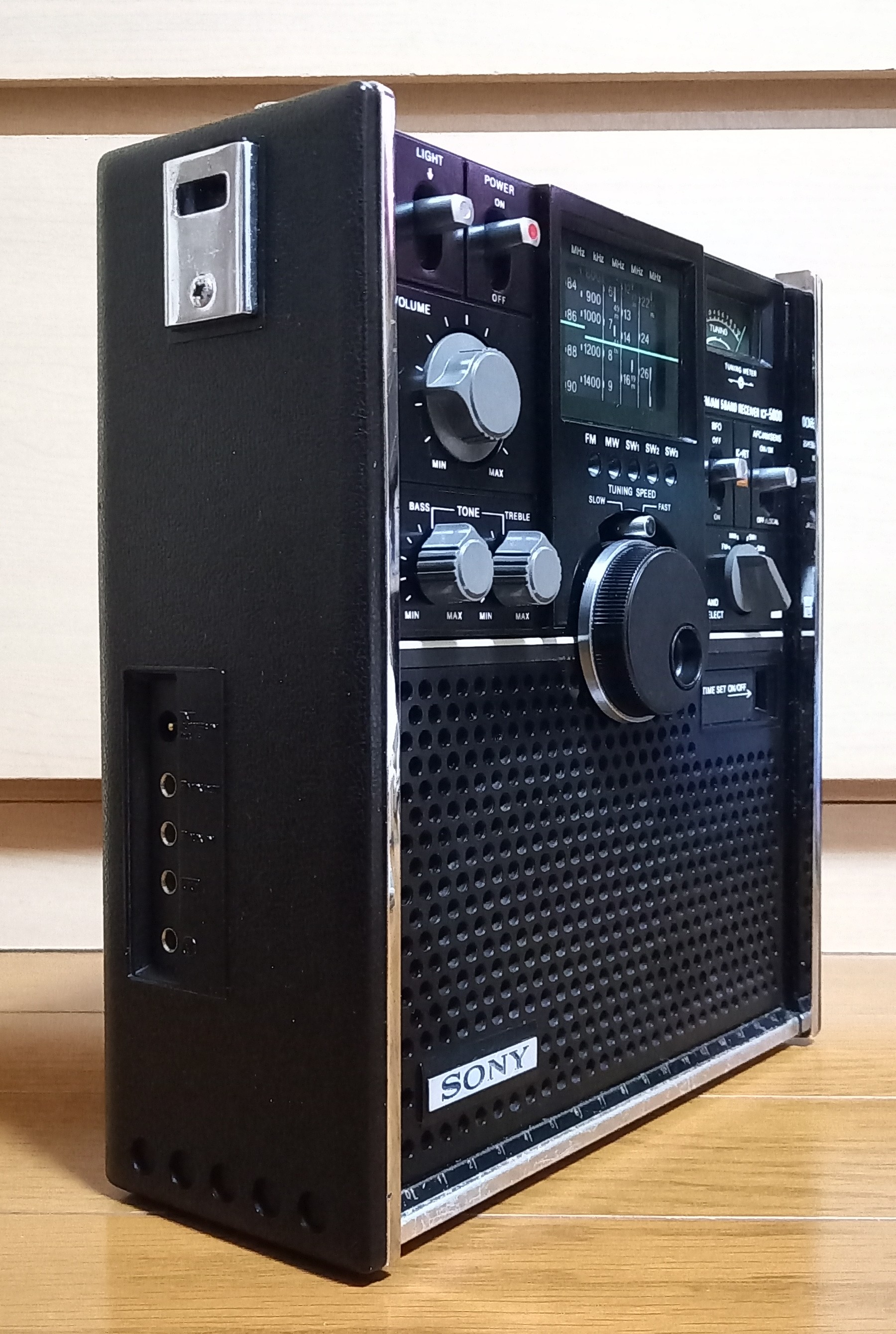 スカイセンサー『ICF-5800』の修理整備済み動作品で、 各バンドとも受信でき、BFOも動作し、SSB、CWの復調もできます。   バンド切り替えスイッチ他のスライドスイッチは、分解清掃し、接点グリスを塗布してありますので、 長期間接触不良は出ないと思います。音量及びトーンコントロールに気になるようなガリはありません。 不良になりがちなAMのトランジスタ(2SC710)は代替トランジスタに交換してあります。