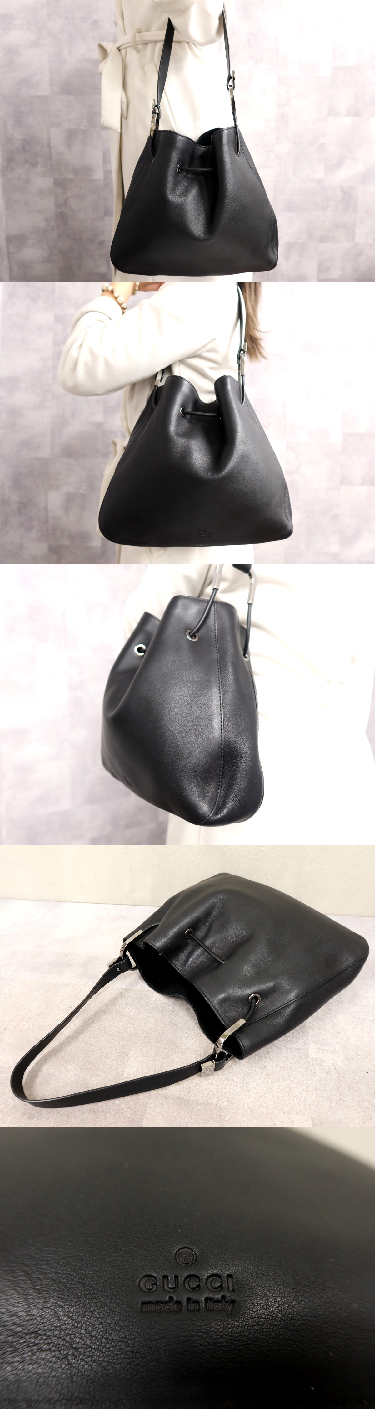 Product name: ●超美品●GUCCI グッチ●ロゴ型押し●カーフ レザー 本革●ショルダー ハンド バッグ●黒●シルバー金具●肩掛け●イタリア製●Js65560