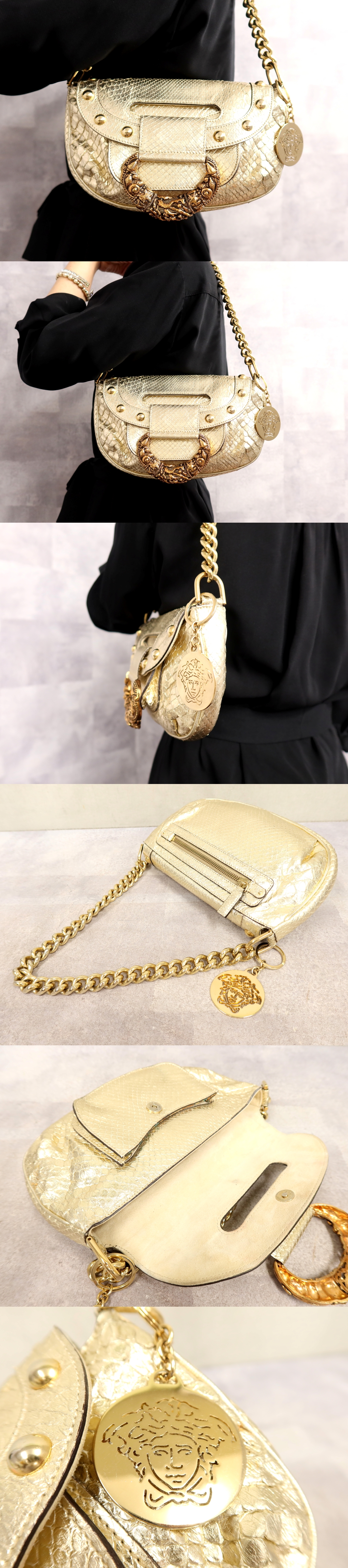 Product name: ●超美品●ヴェルサーチ●メデューサ●パイソン 型押し カーフ レザー 本革●チェーン ショルダー バッグ●ゴールド●G金具●収納●Js66498