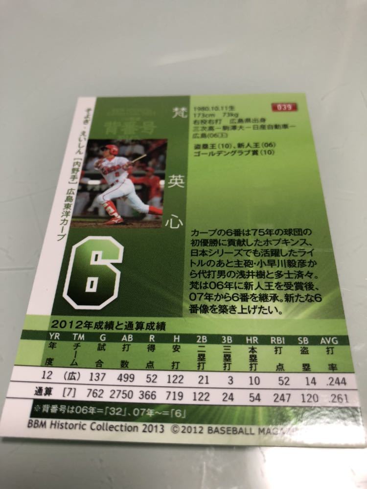 Product name: BBM2013★ヒストリックコレクション★梵英心★プロ野球背番号列伝6★広島東洋カープ★039