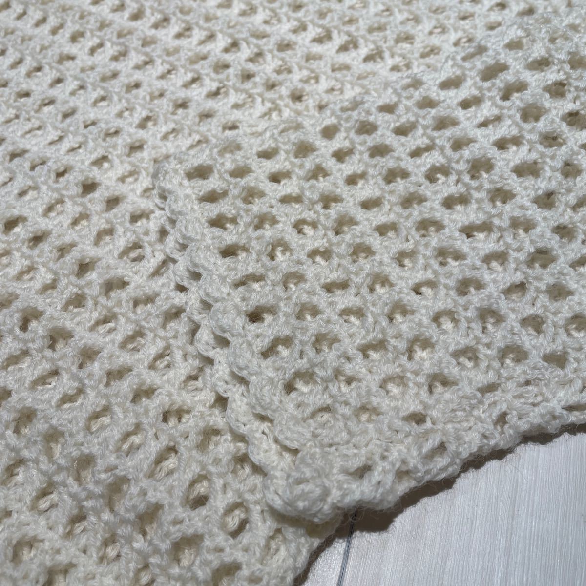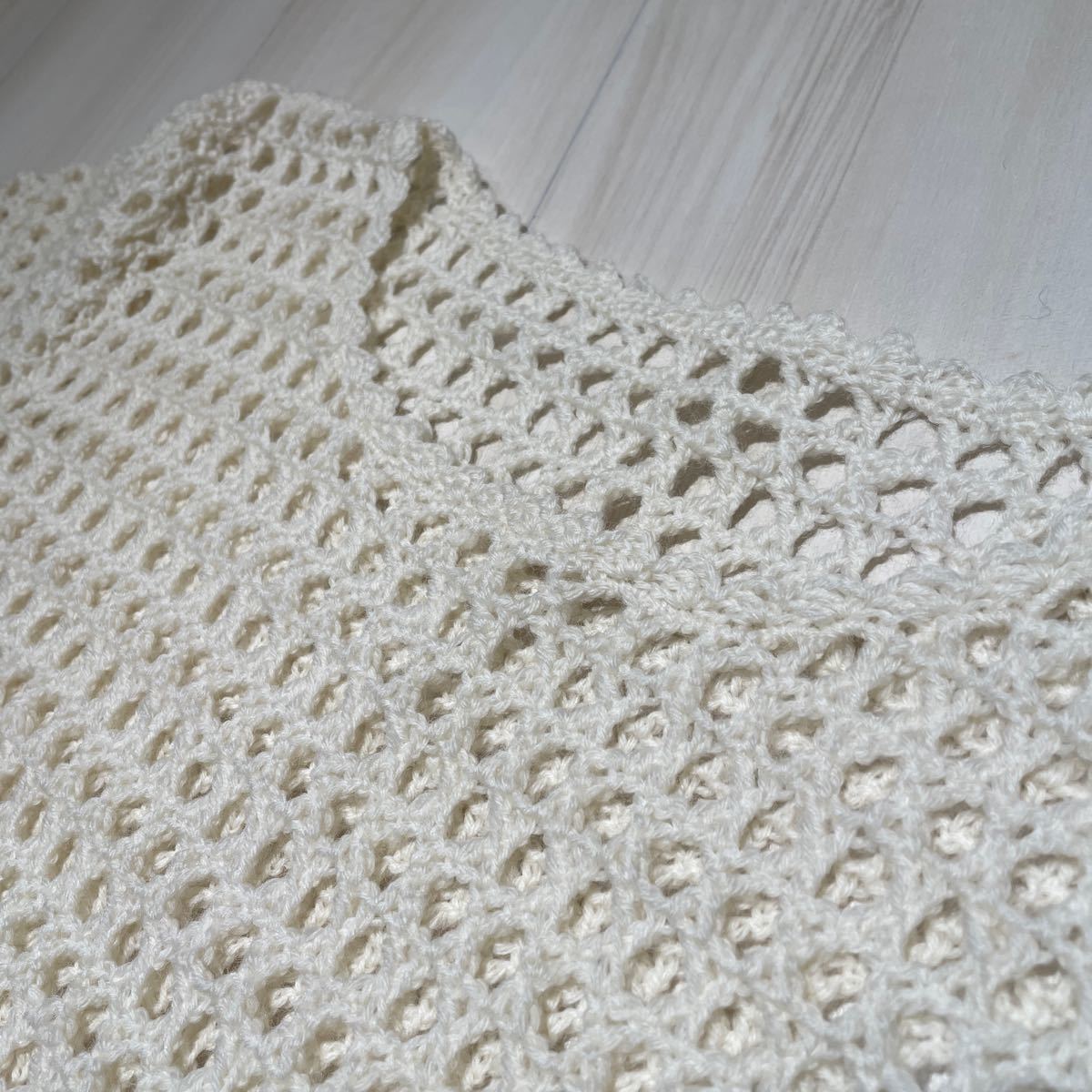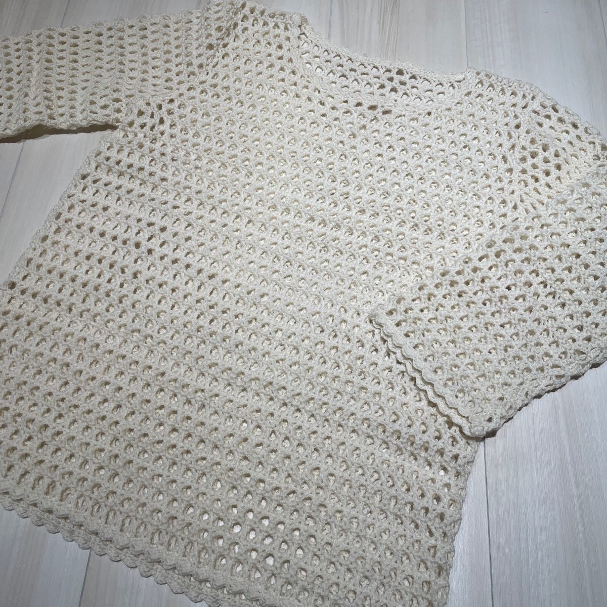 Product name: ハンドメイド ニット 手編み 生成り セーター メッシュ 穴あけ 七分袖 レディース 重ね着 アイボリー系 Mくらい かぎ針 重ね着