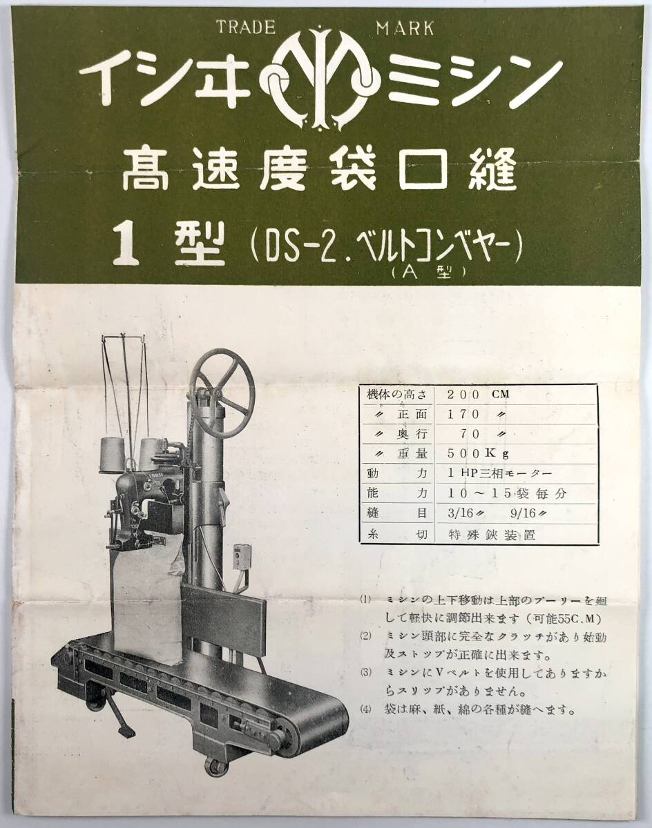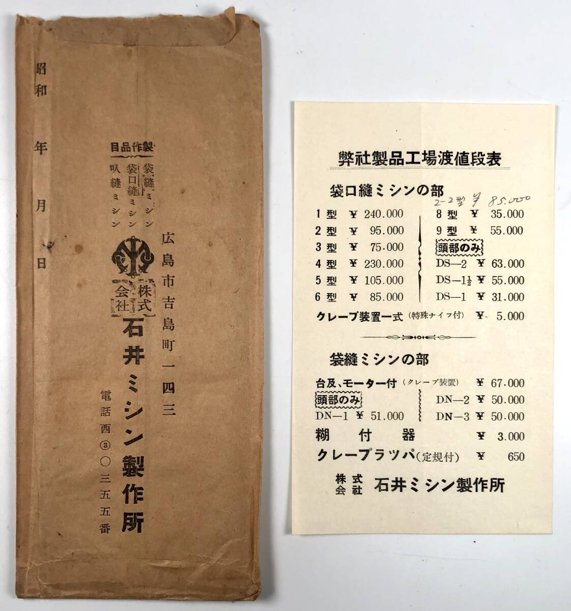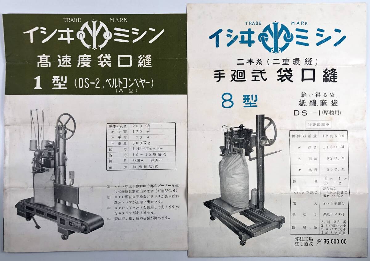 Product name: 石井式袋口縫ミシン カタログ2種(石井ミシン製作所/価格表・封筒あり/戦後/レトロ/JUNK)
