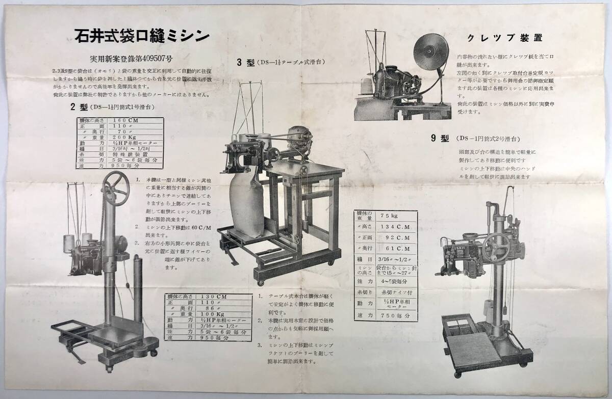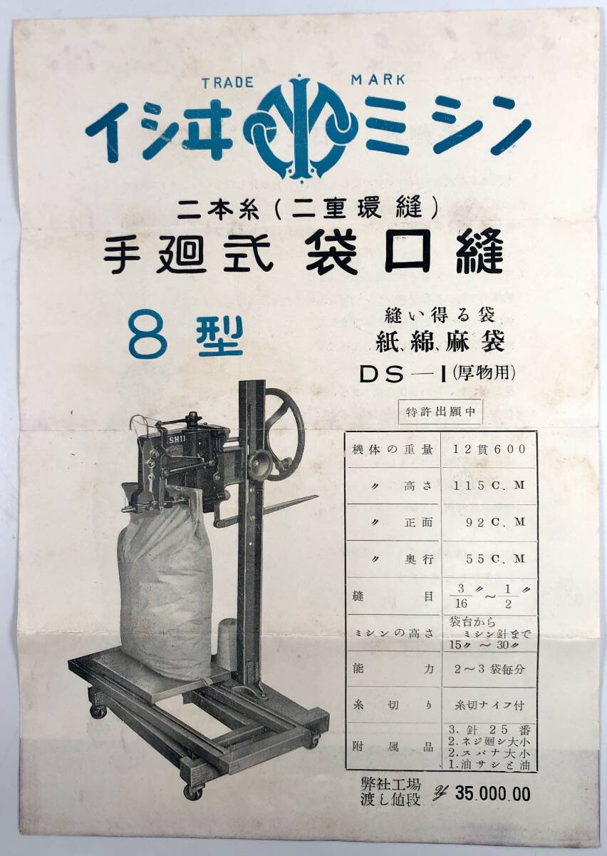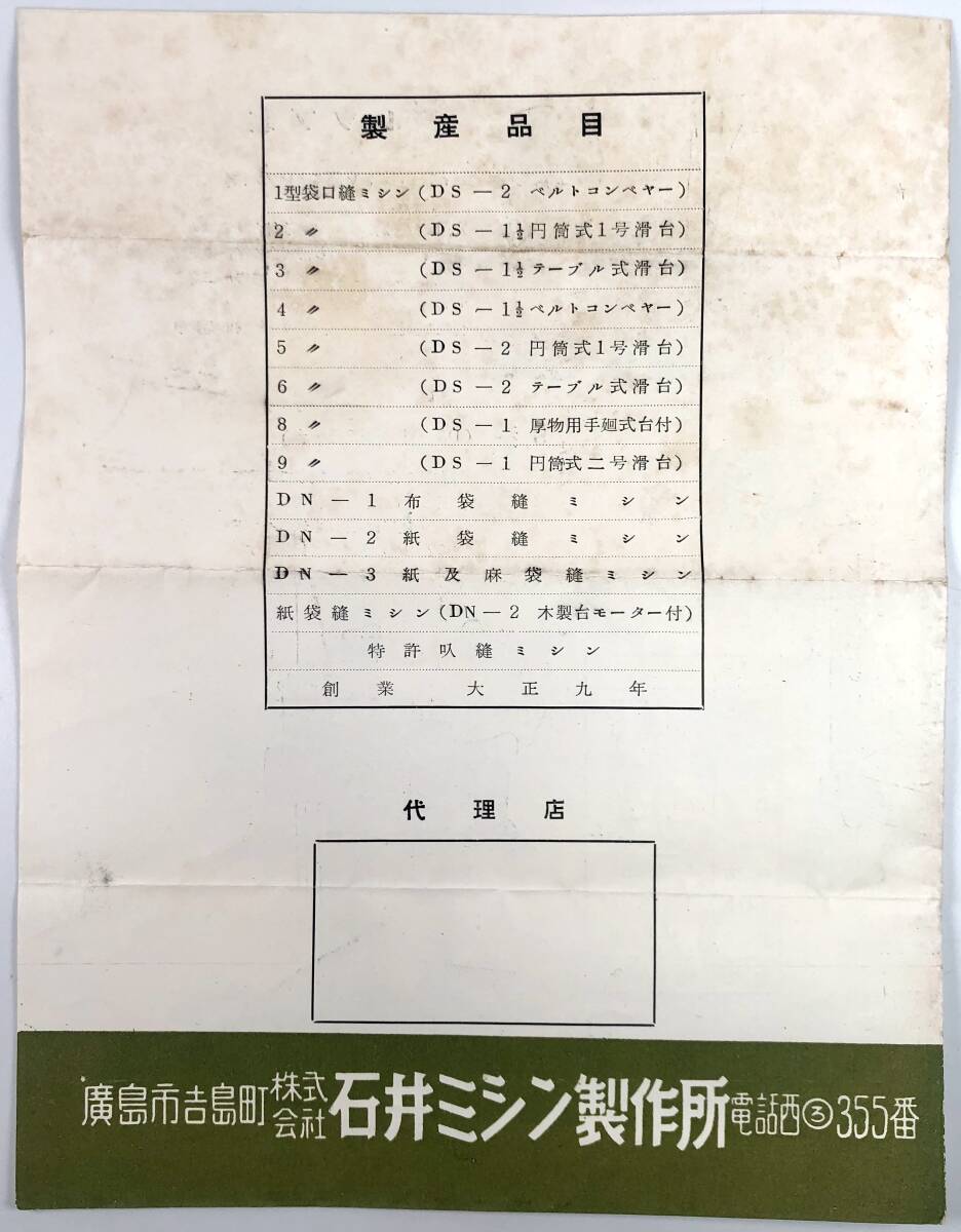 Product name: 石井式袋口縫ミシン カタログ2種(石井ミシン製作所/価格表・封筒あり/戦後/レトロ/JUNK)
