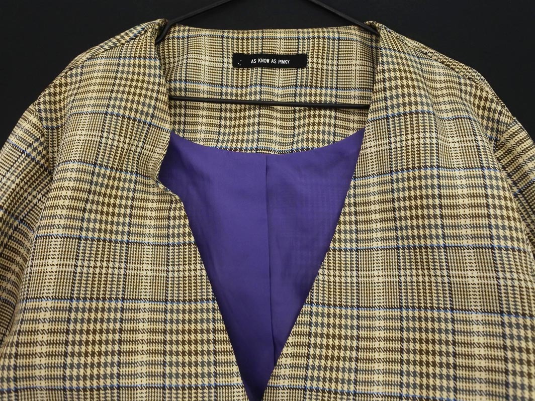 Product name: AS KNOW AS アズノゥアズ pinky ピンキー グレンチェック ノーカラー ジャケット sizeF/ベージュ ◇■ ☆ ekc7 レディース