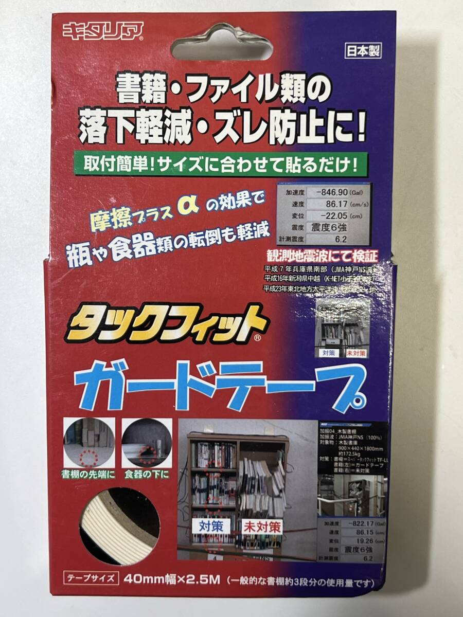 Product name: 日本製 キタリア 【タックフィット ガードテープ 40mmx2.5M】 転倒 落下軽減 震度6強検証済 一般家庭 本 食器 瓶 訳有り