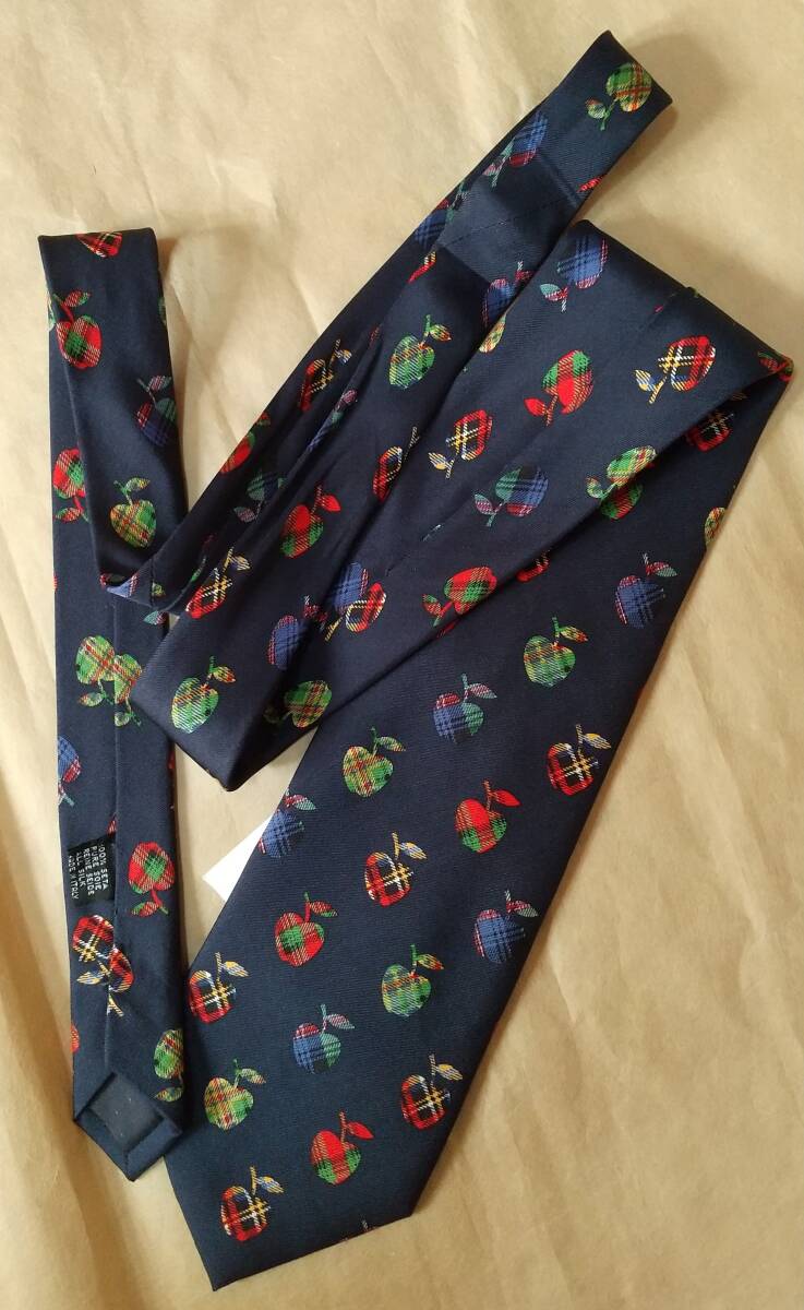 そこで、アップル模様の絵が描かれた、シンプソン・ロンドンのネクタイを、商品としてではなく、サービス品として付けます。