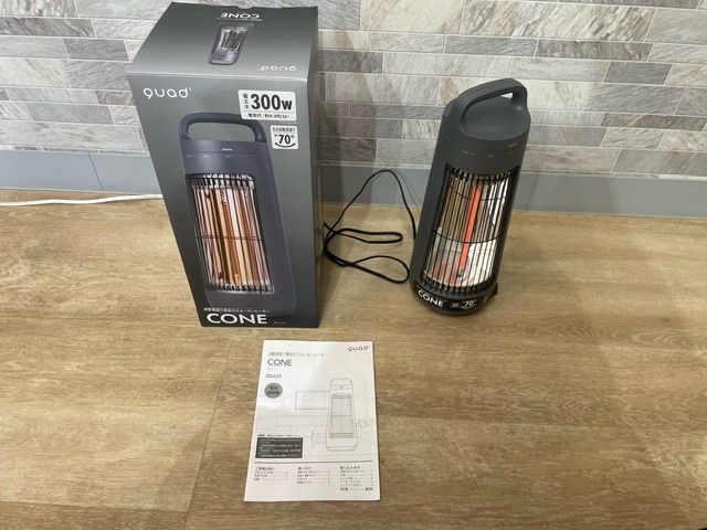 K5316◆ 【動作確認済】 QUADS クワッズ 自動首振り機能付き カーボンヒーター CONE コーン QS425GY グレー 暖房器具 電気ヒーター