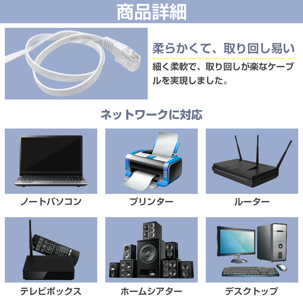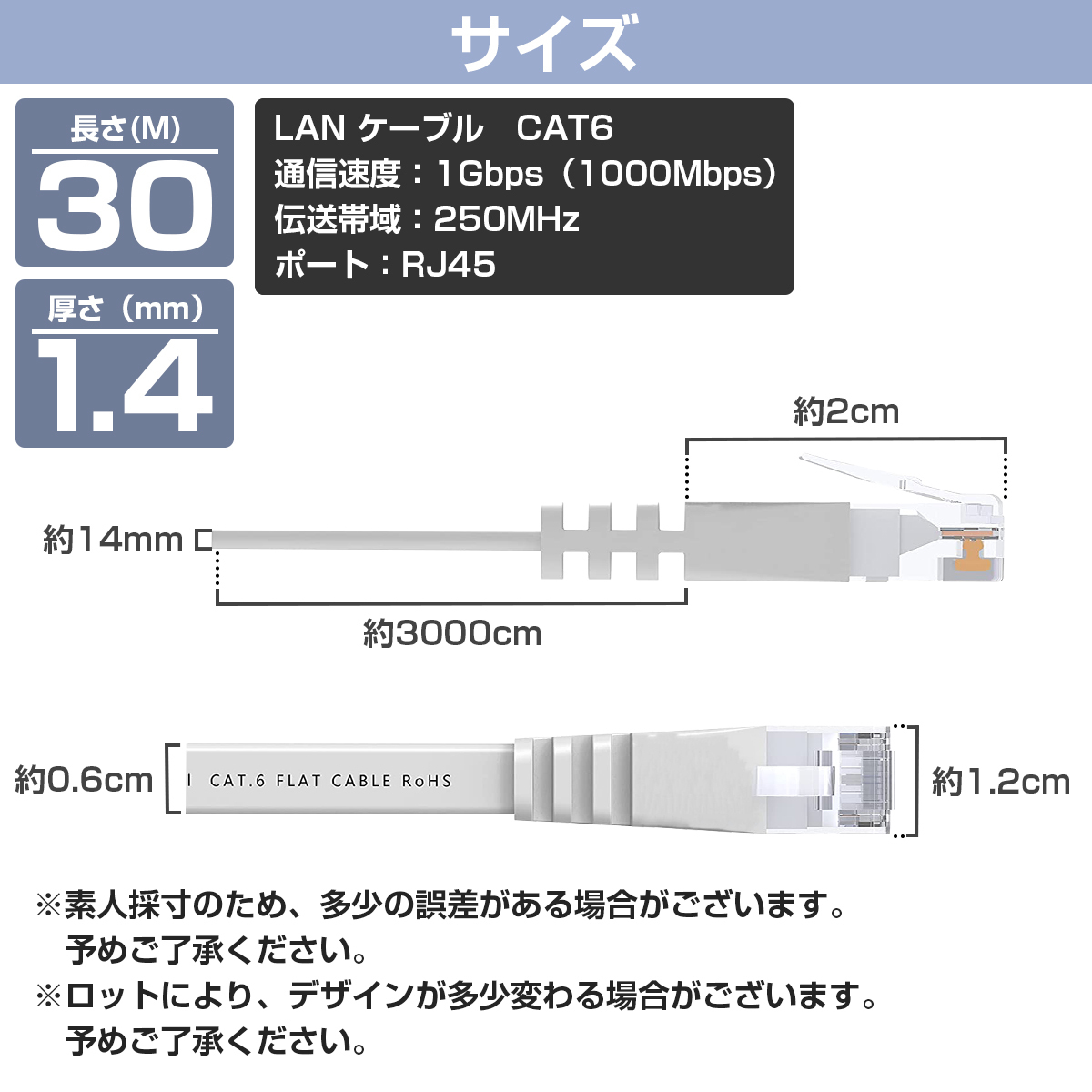 CAT6 カテゴリ6 薄型スーパーフラット LANケーブル 30m 3000cm ホワイト パソコン インターネット PC Wi-Fi WiFi ルーター 無線 有線 配線