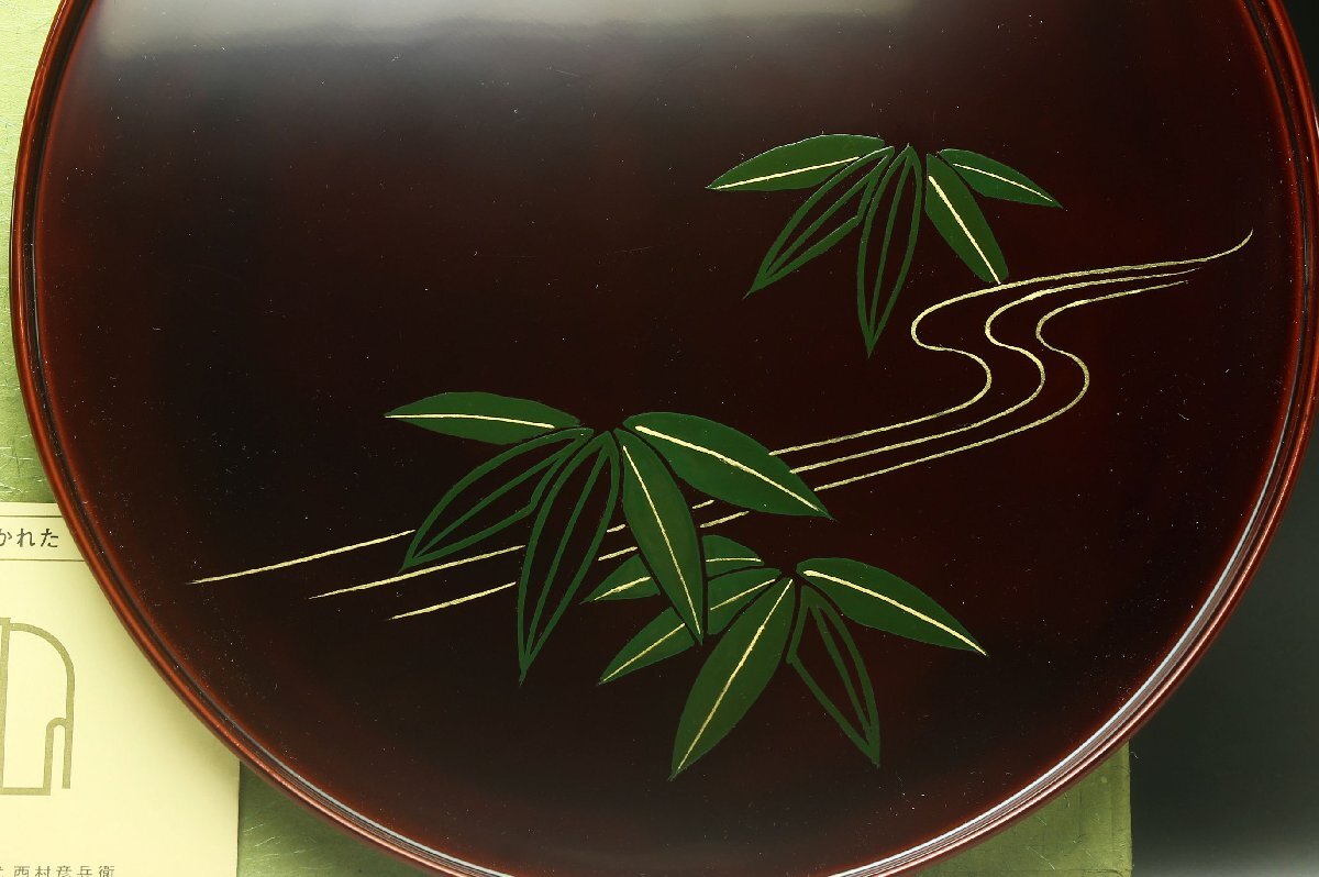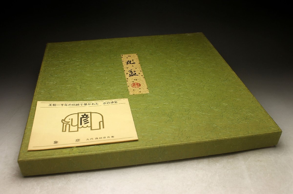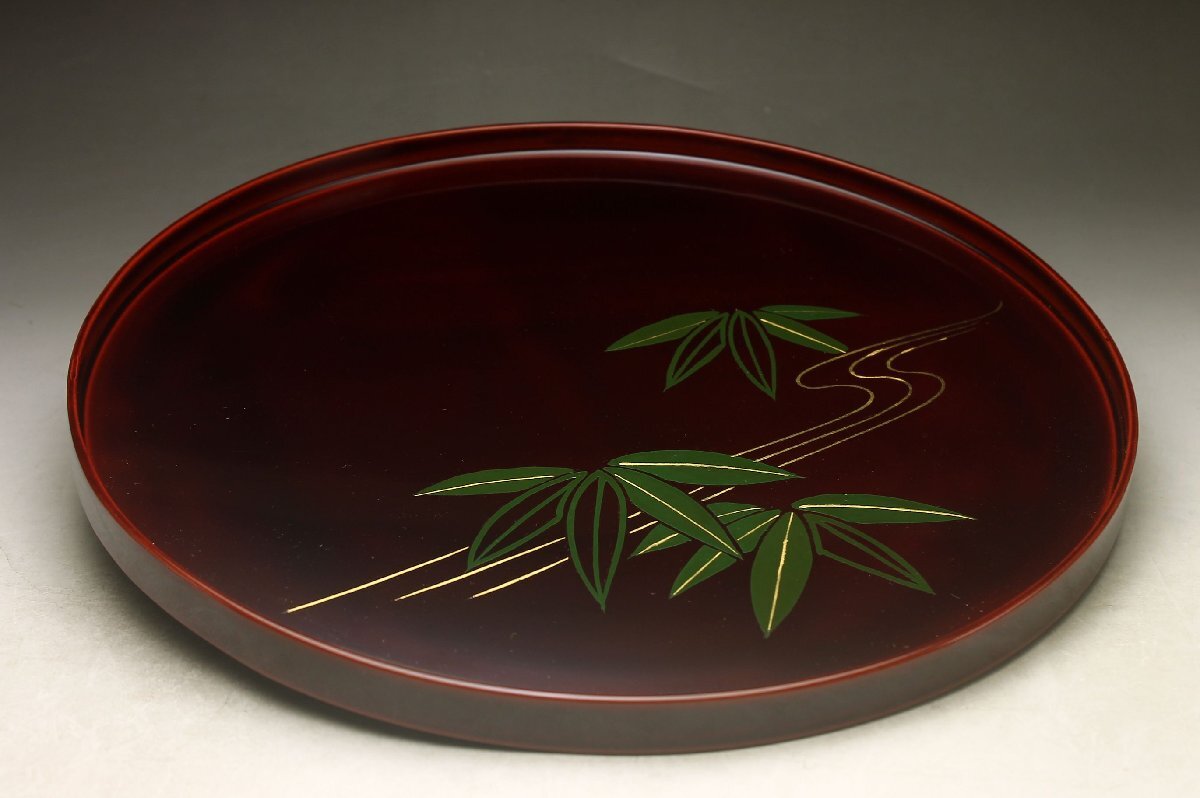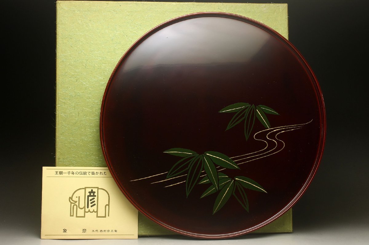 Product name: 【余韻】 平安象彦 天然木製 流れ笹文 丸盆★化粧箱 無傷美品<同梱可>