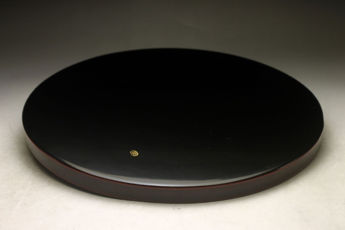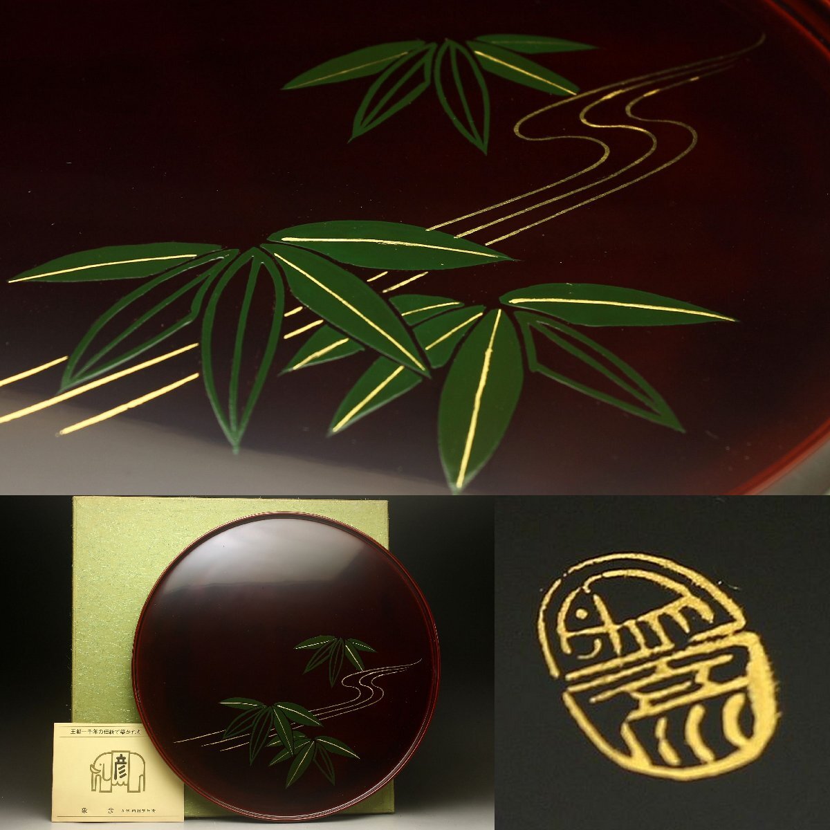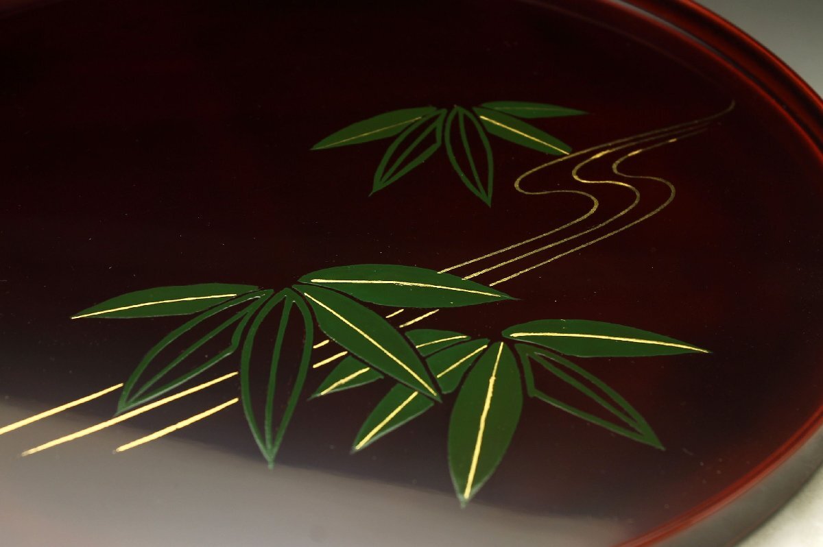 Product name: 【余韻】 平安象彦 天然木製 流れ笹文 丸盆★化粧箱 無傷美品<同梱可>