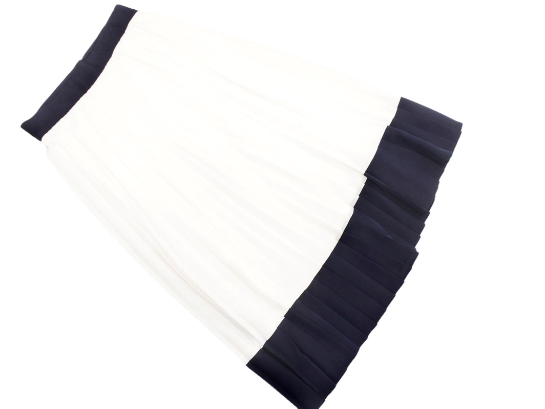 Product name: MICHEL KLEIN ミッシェルクラン シフォン バイカラー プリーツ スカート size38/白x濃紺 ■◇ ☆ fca6 レディース