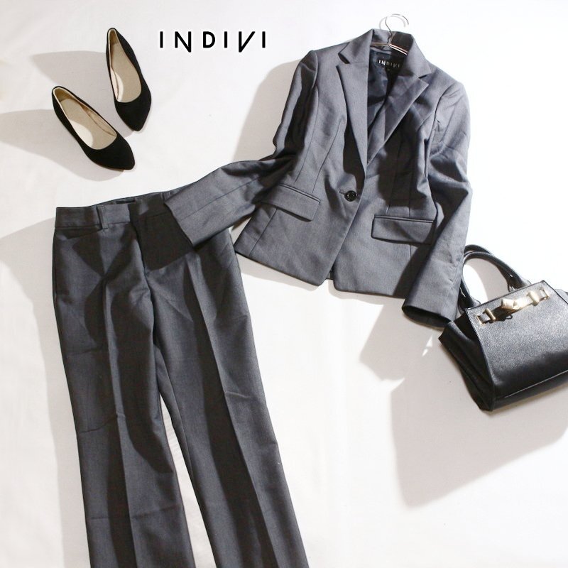 Product name: インディヴィ INDIVI ハリ 艶 お勧め スーツ ジャケット パンツ スーツ上下セット フォーマル 7号 36 グレー 縊れ 美脚 ビジネス セット