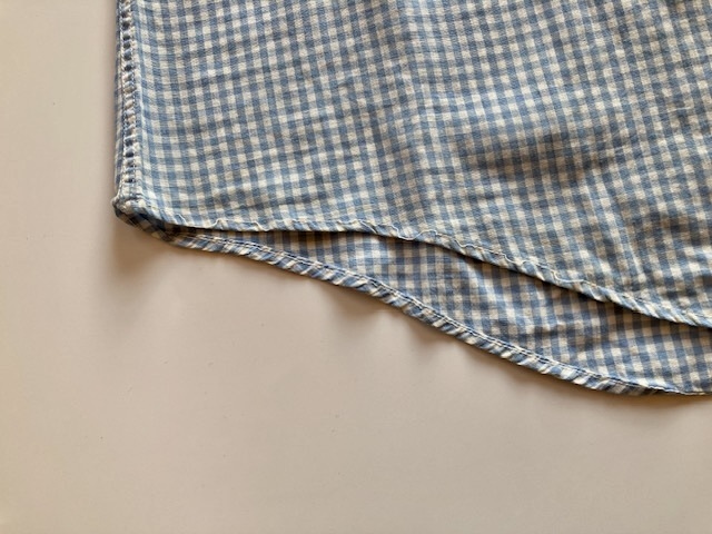 ギンガムチェックのプルオーバー、襟は3点留です。