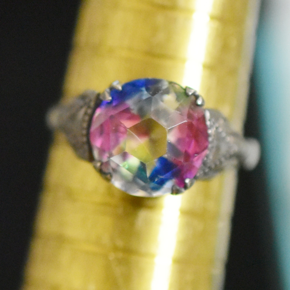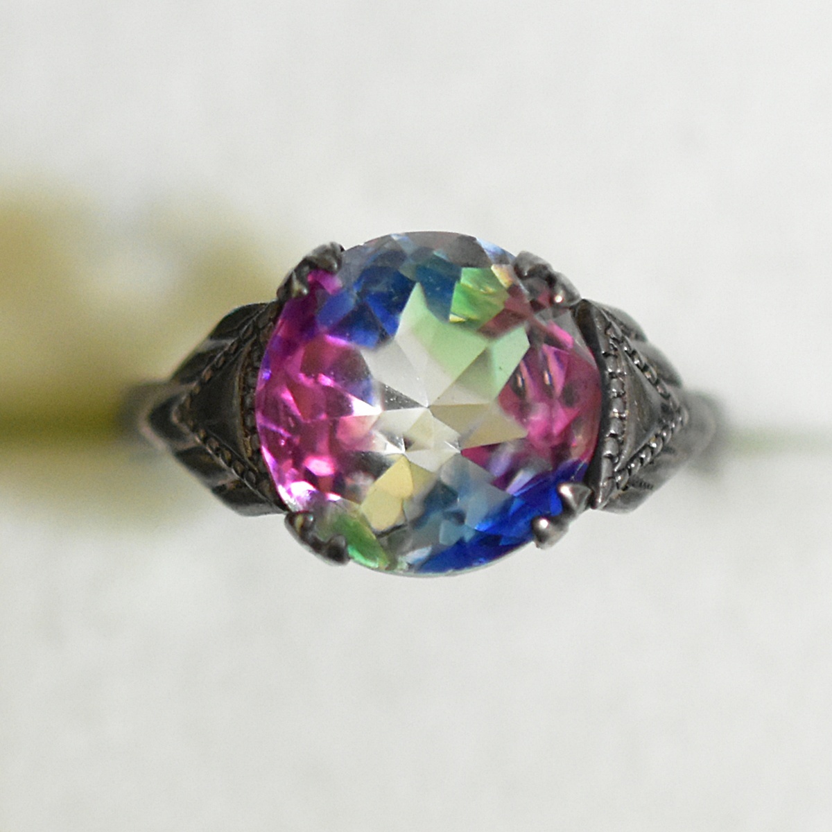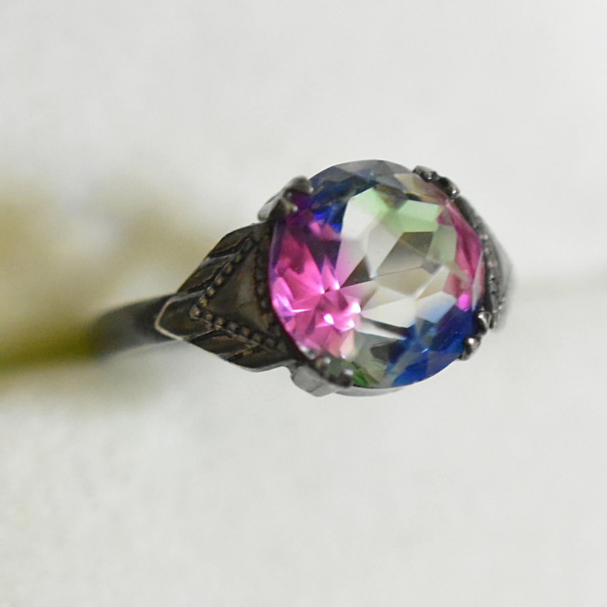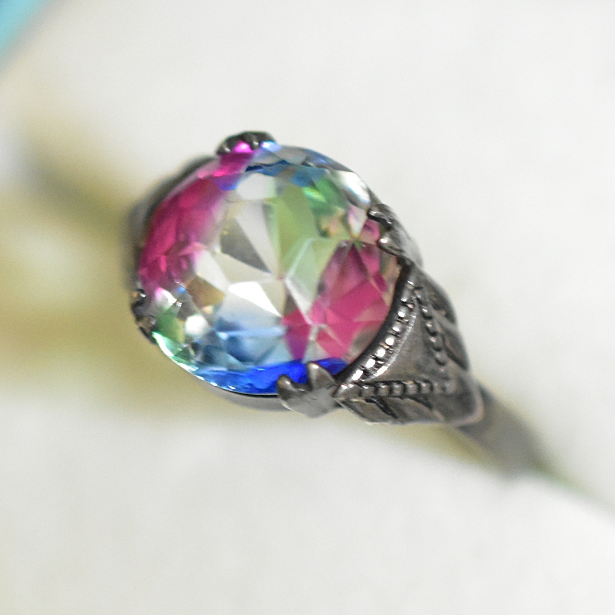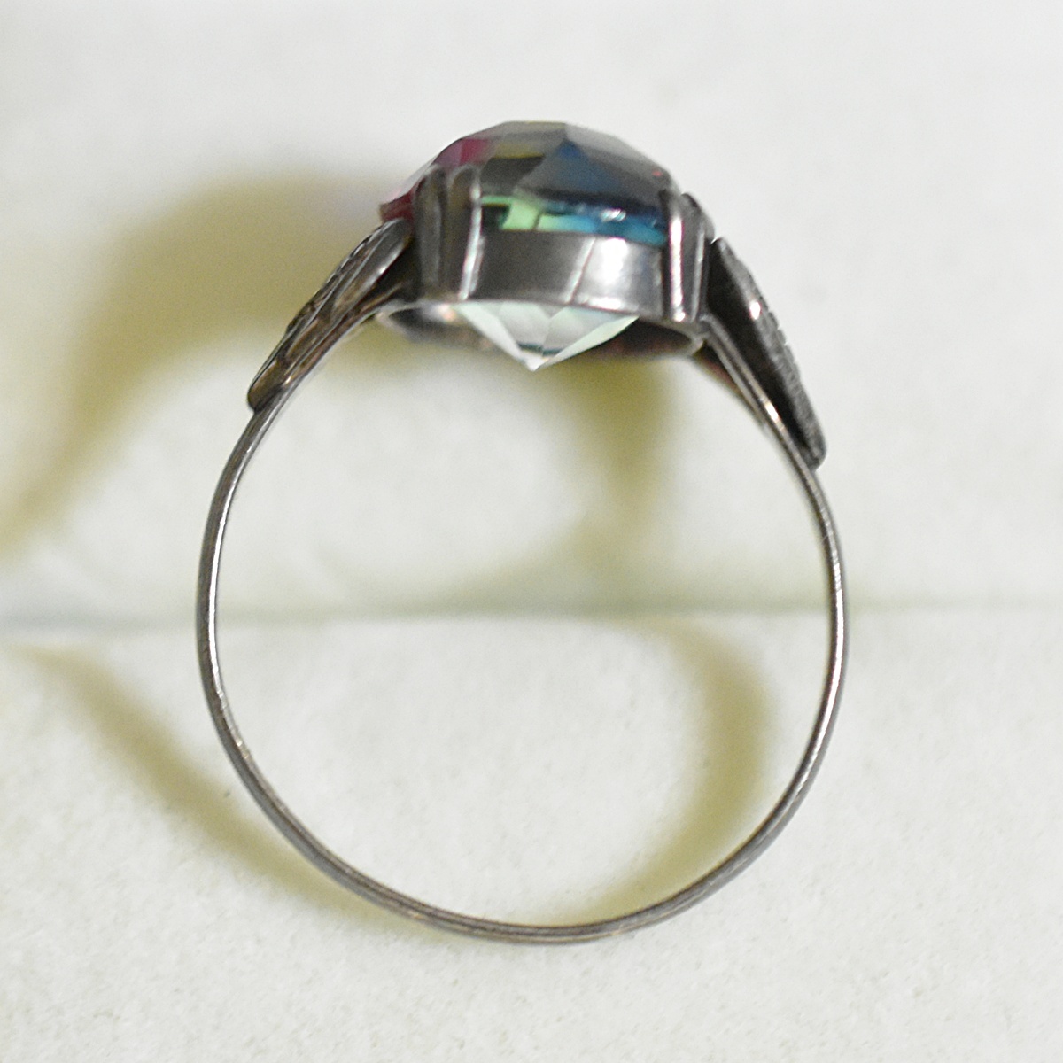 アンティーク オールドカット 銀製 アイリスガラスのリング/指輪 本物保証