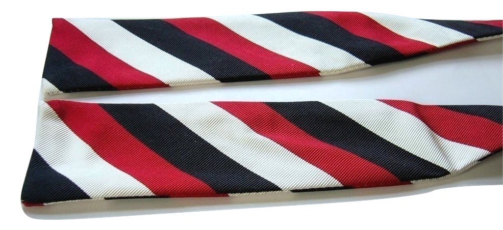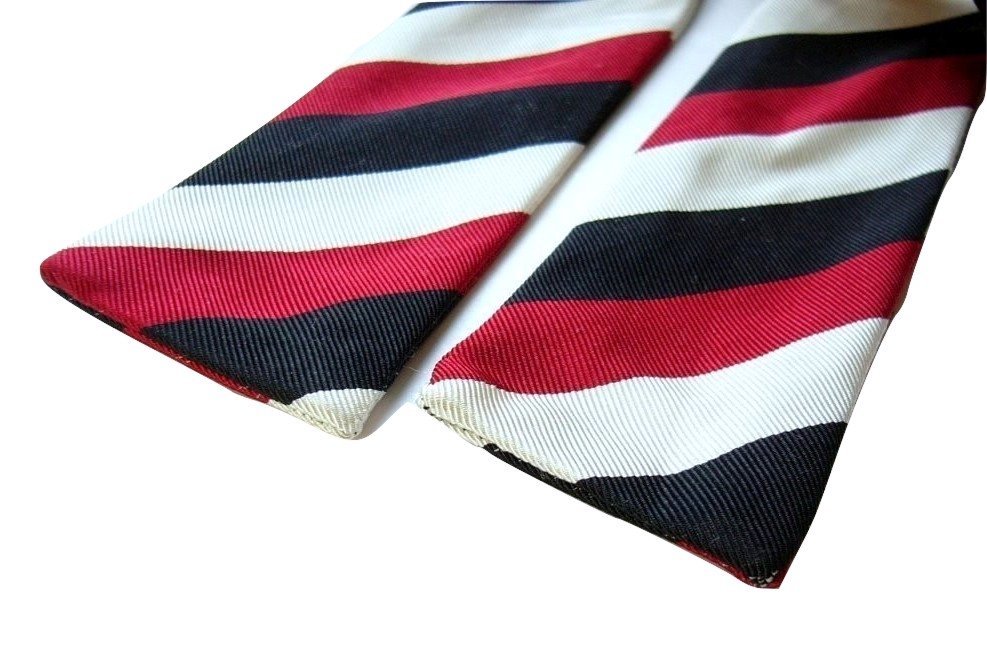 Silk and cotton. Self-tie, square edge. Dry clean.
