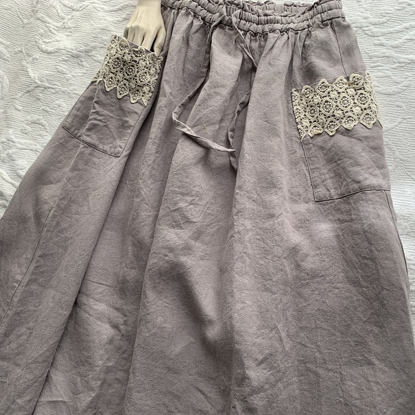 Product name: ツハルバイサマンサモスモス TSUHARU by Samansa Mos2 SM2 リネンスカート レースポケット F 紫グレー系 ボトムス フレアスカート