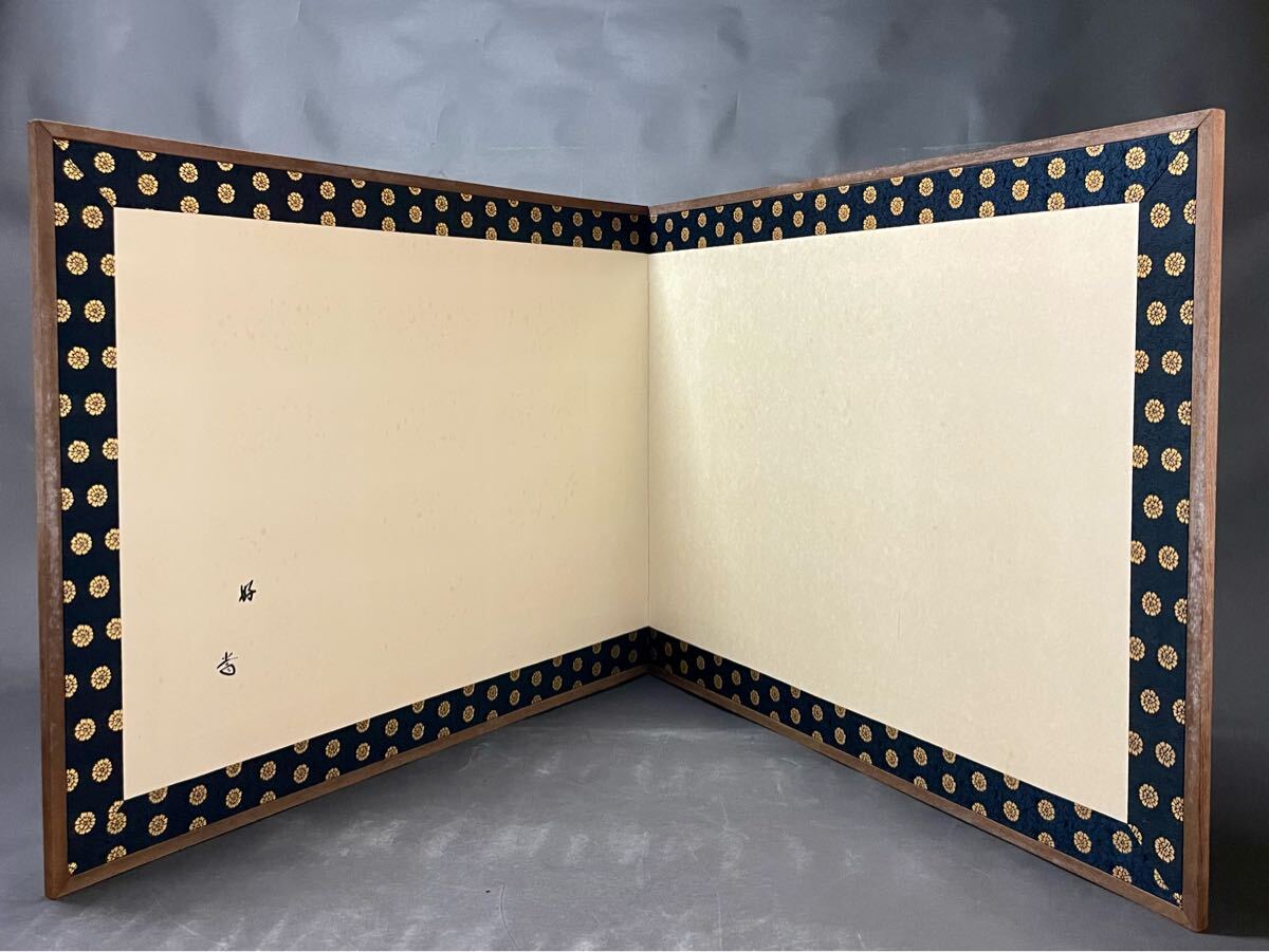 「母」前大徳寺 藤井誠堂書付 花押 緞子縁 風炉先屏風 (401③)