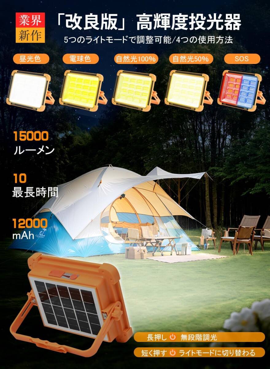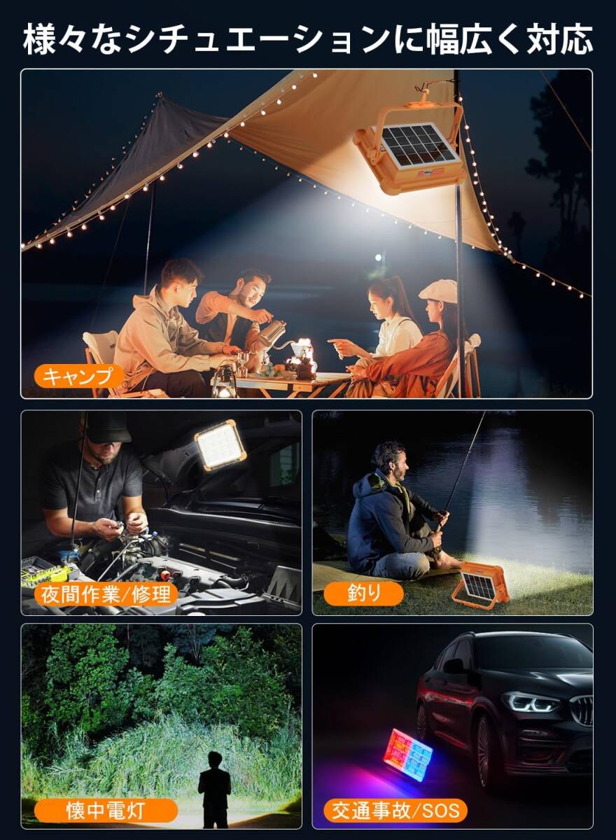 Product name: 投光器 led 作業灯 充電式 led ソーラー充電 フラッドライト 防水 キャンプ ライト ワークライト 登山 夜釣り 緊急 防災 停電対策 屋外照明