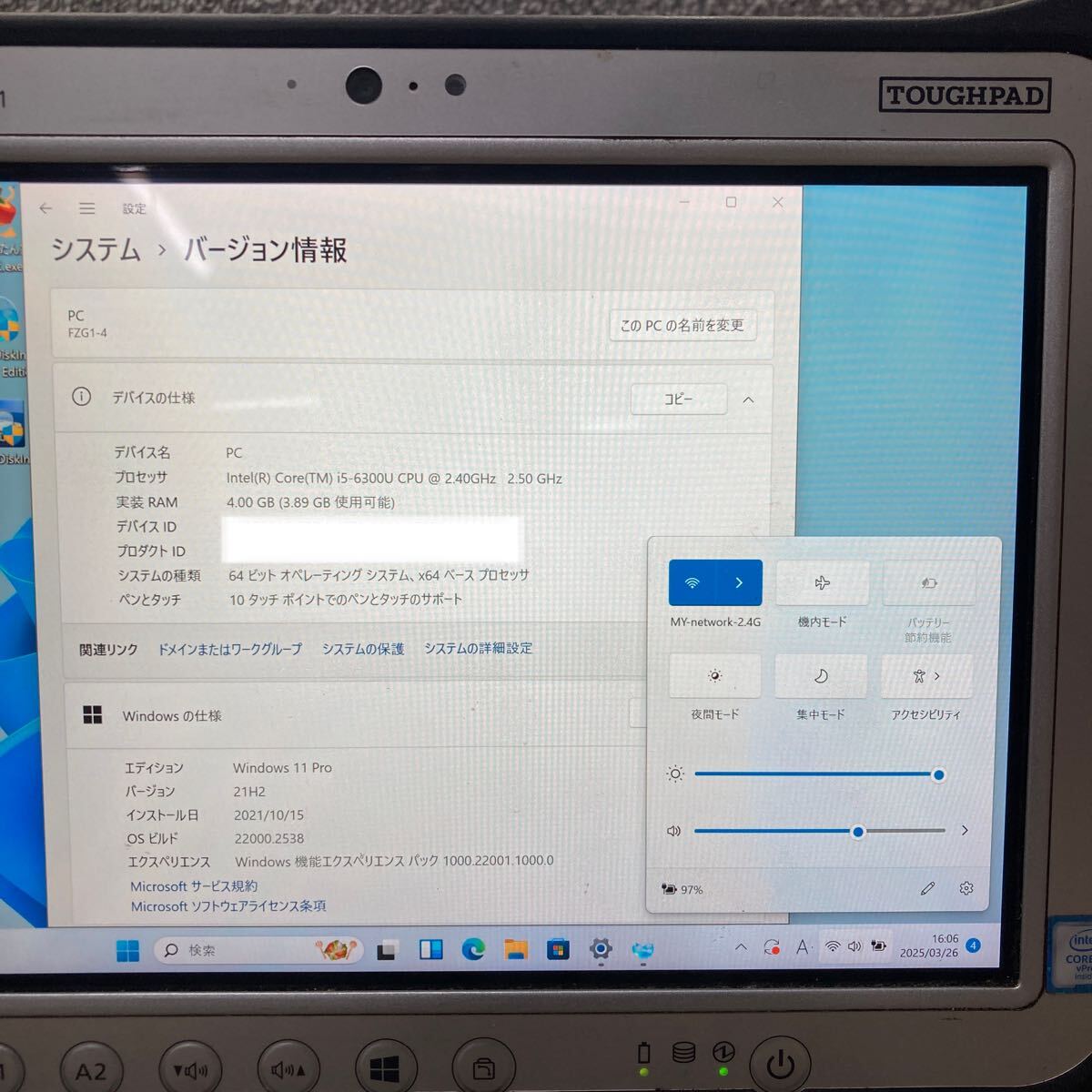 Product name: MY3T-137 激安 OS Windows11Pro試作 タブレットPC Panasonic TOUGHPAD FZ-G1 Core i5 6300U メモリ4GB 高速SSD128GB カメラ 現状品