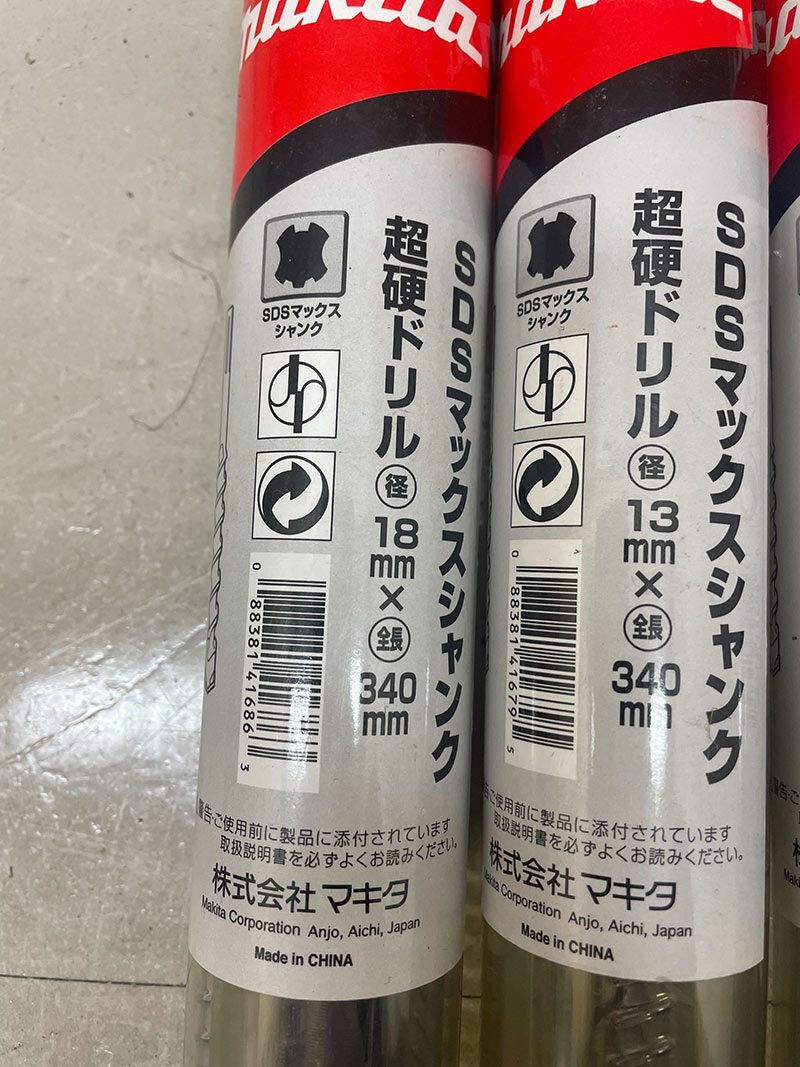 マキタ makita SDSマックスシャンク 超硬ドリル まとめて 13mm 16mm 18mm 2本 340mm