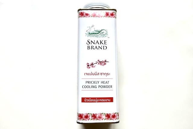 1892年の創業のタイで定番スネークブランド。あせもや皮膚のかぶれを緩和するパウダーで天然成分の心地良い香りと刺激的な清涼感で暑さ対策になります。