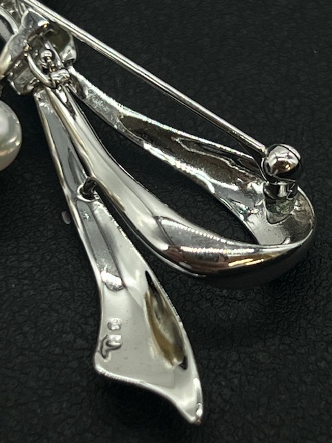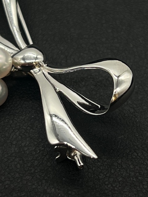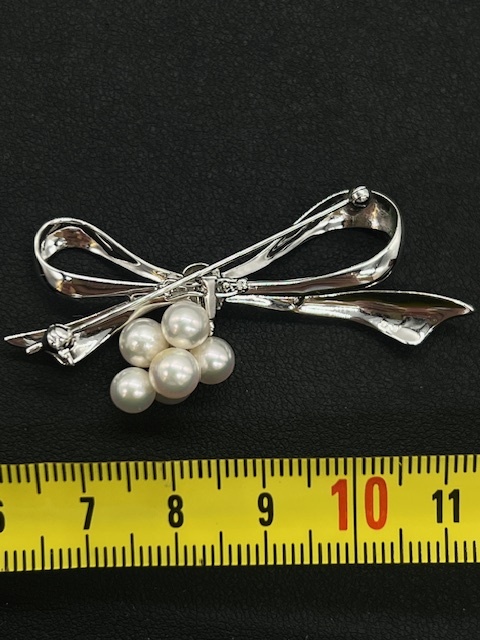 Product name: S8320■【MIKIMOTO】 ミキモト シルバー ブローチ リボン モチーフ 真珠 パール 7粒 銀製 約7g ブランド アクセサリー ジュエリー ■