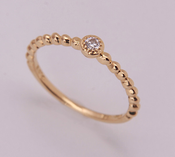 0.03ctの一粒ダイアが輝く細身のデザインリングです。