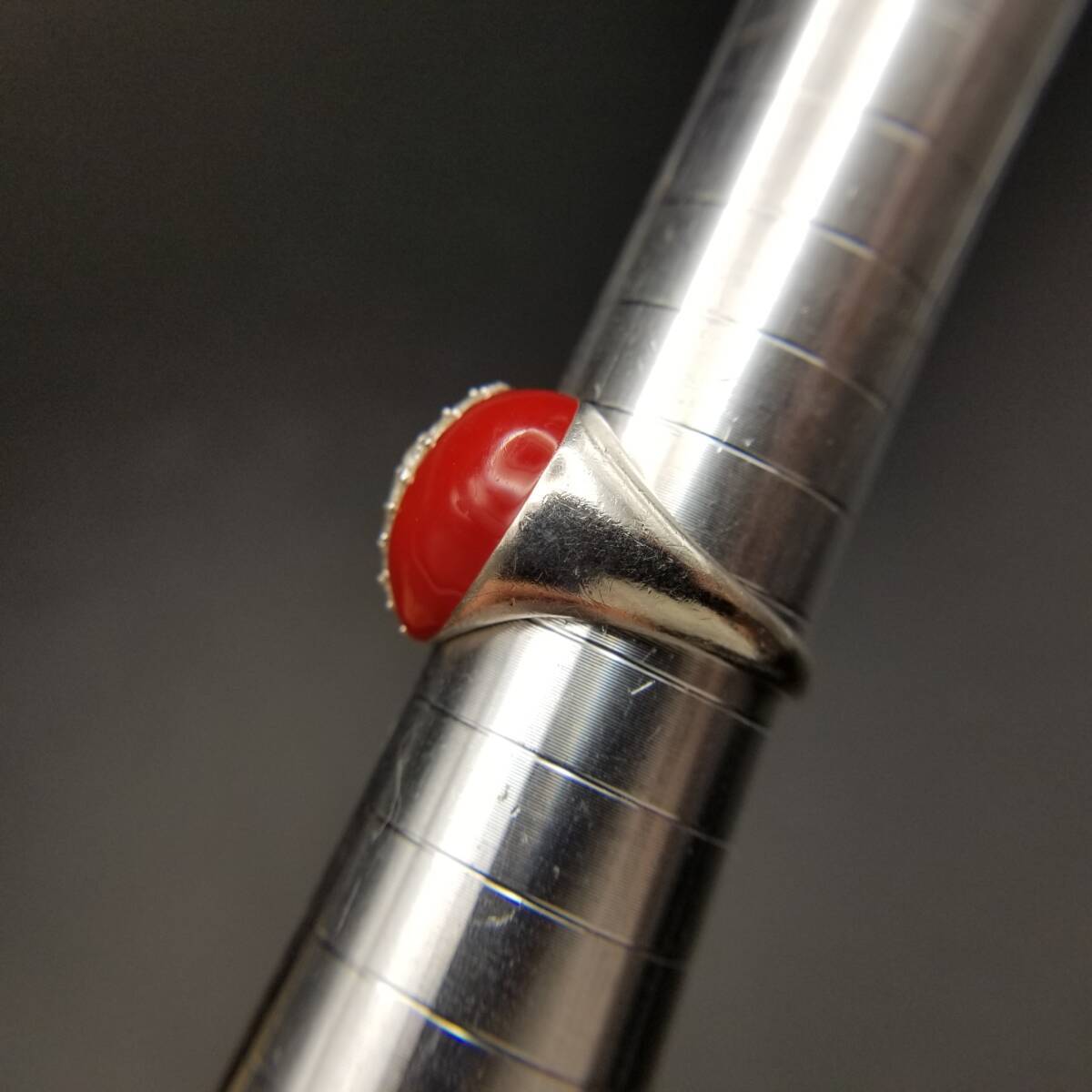 赤いハート キュービックジルコニア 装飾 925 シルバー ヴィンテージ ドーム リング 銀 指輪 印象的 存在感 大きいサイズ Y22-V