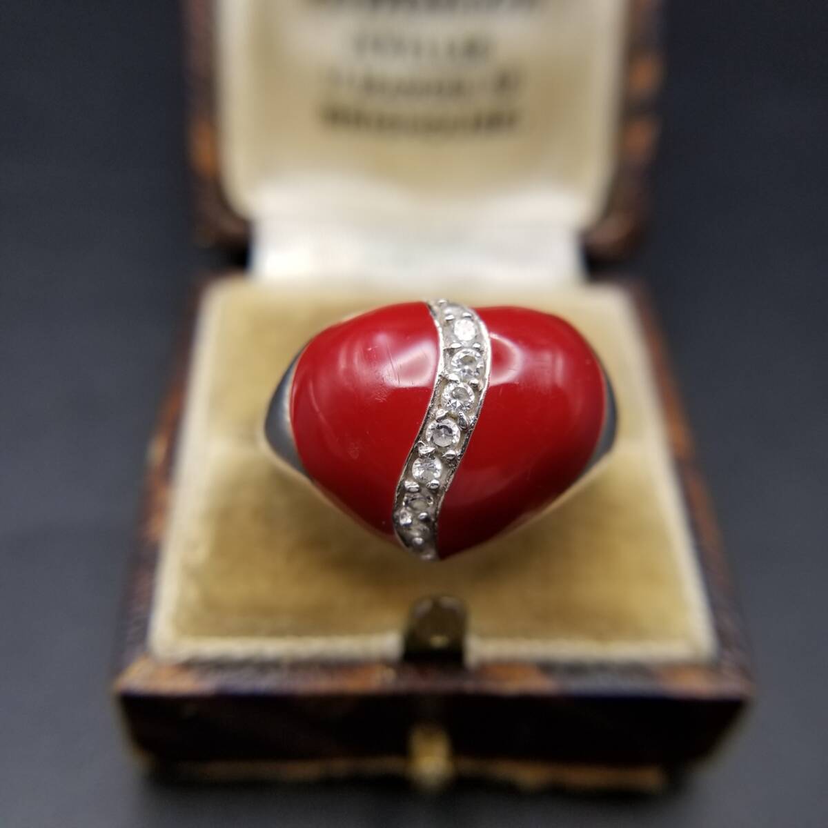 Product name: 赤いハート キュービックジルコニア 装飾 925 シルバー ヴィンテージ ドーム リング 銀 指輪 印象的 存在感 大きいサイズ Y22-V