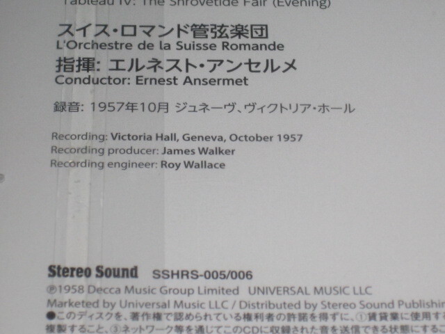 Product name: Stereo Sound SACDシングル・レイヤー★アンセルメ★ペトルーシュカ★2枚組(SACD+CD)