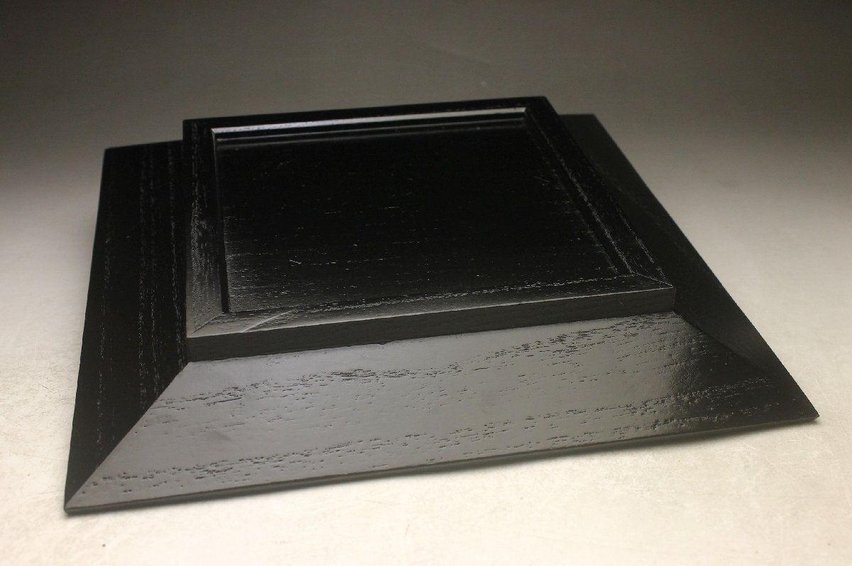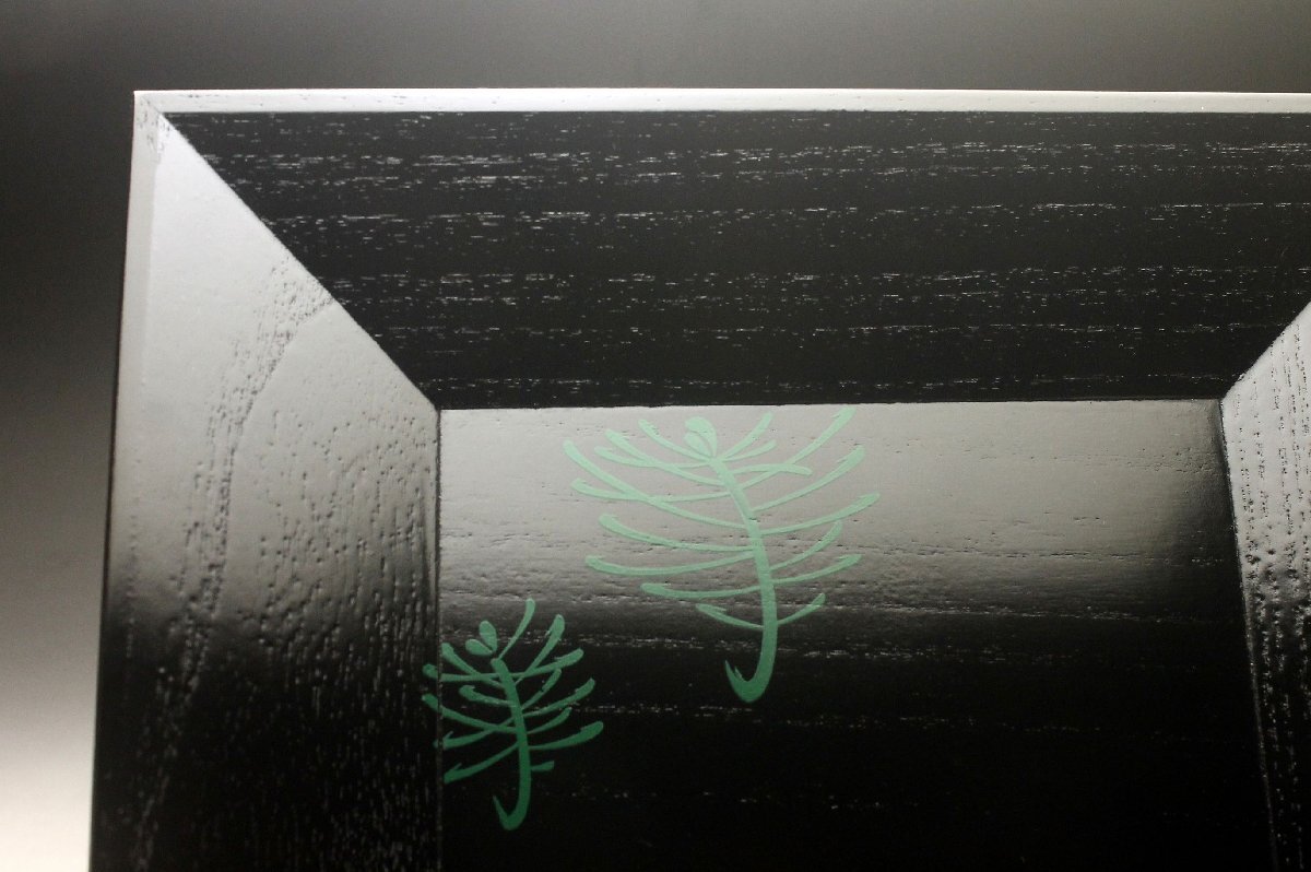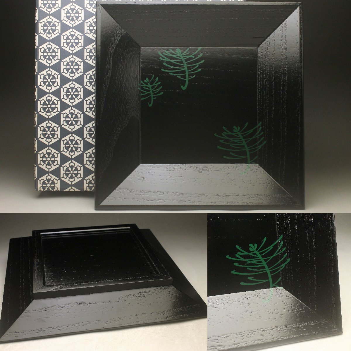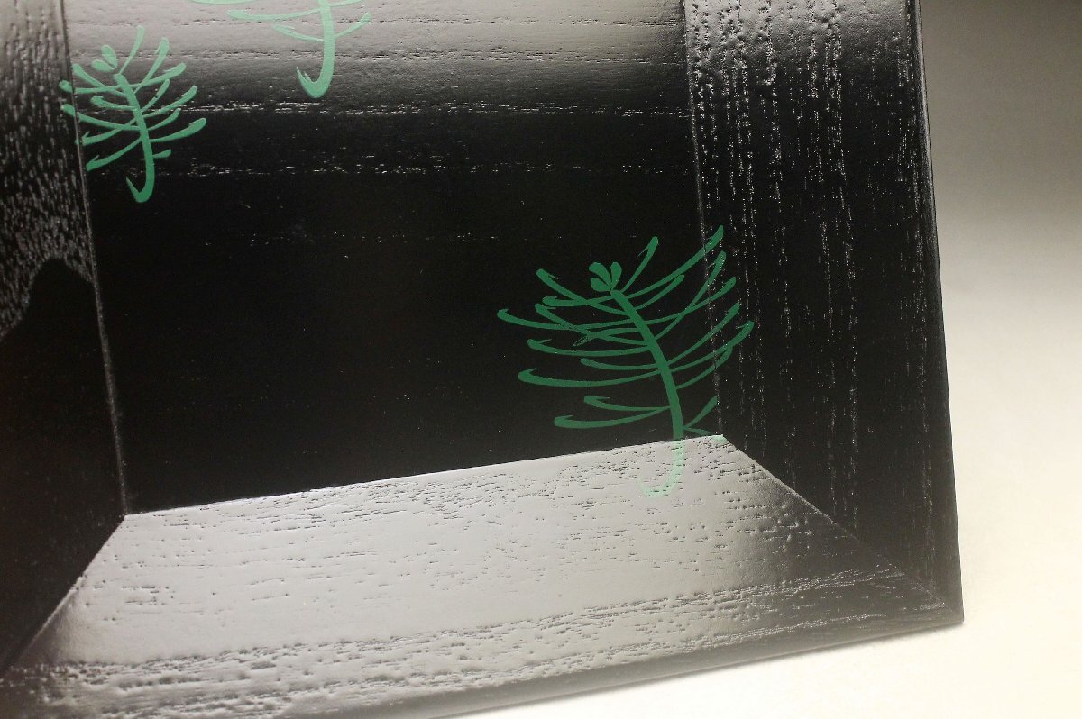 Product name: 【余韻】 天然木製 緑漆松文 四方盆★化粧箱 無傷美品<同梱可>