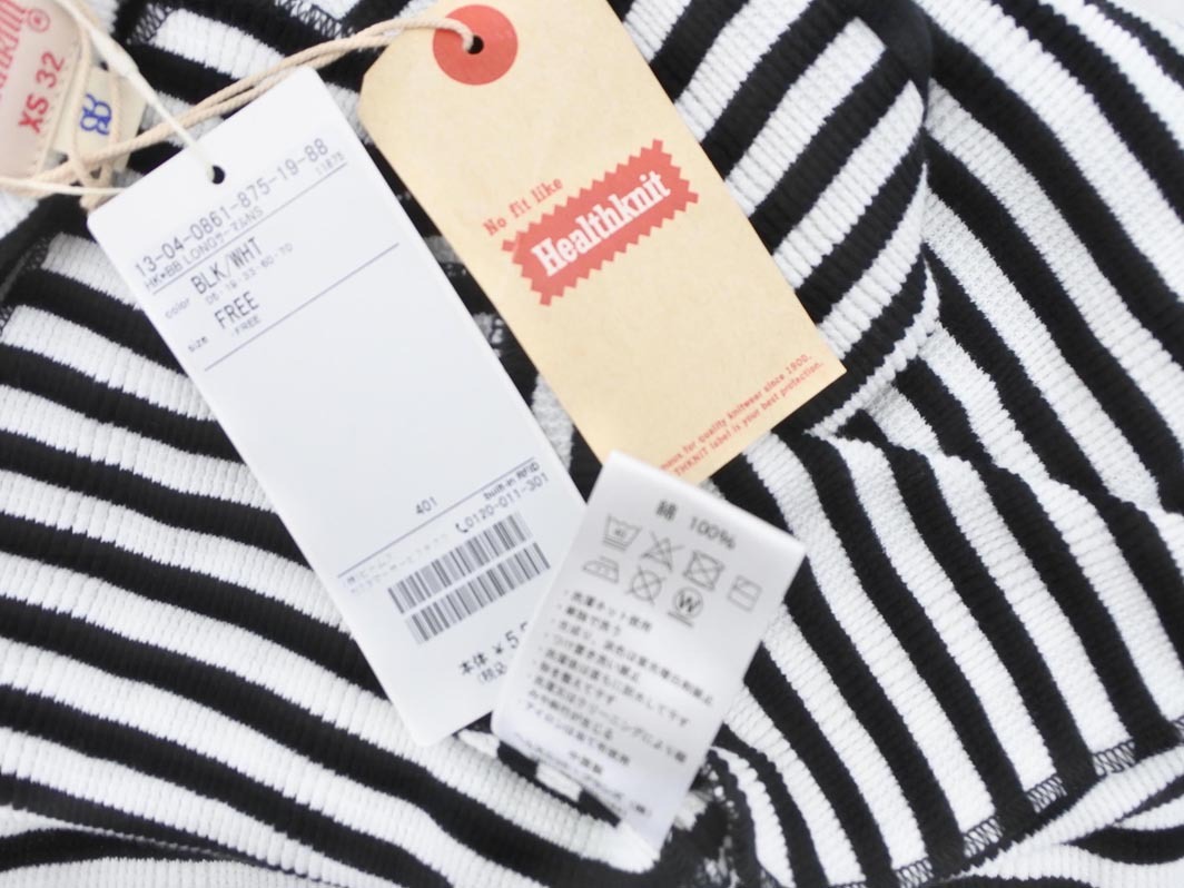 Product name: 新品 ヘルスニット BEAMS 取扱い ボーダー スリット チュニック ノースリーブ カットソー sizeXS/白x黒 ■◆ ☆ fec7 レディース