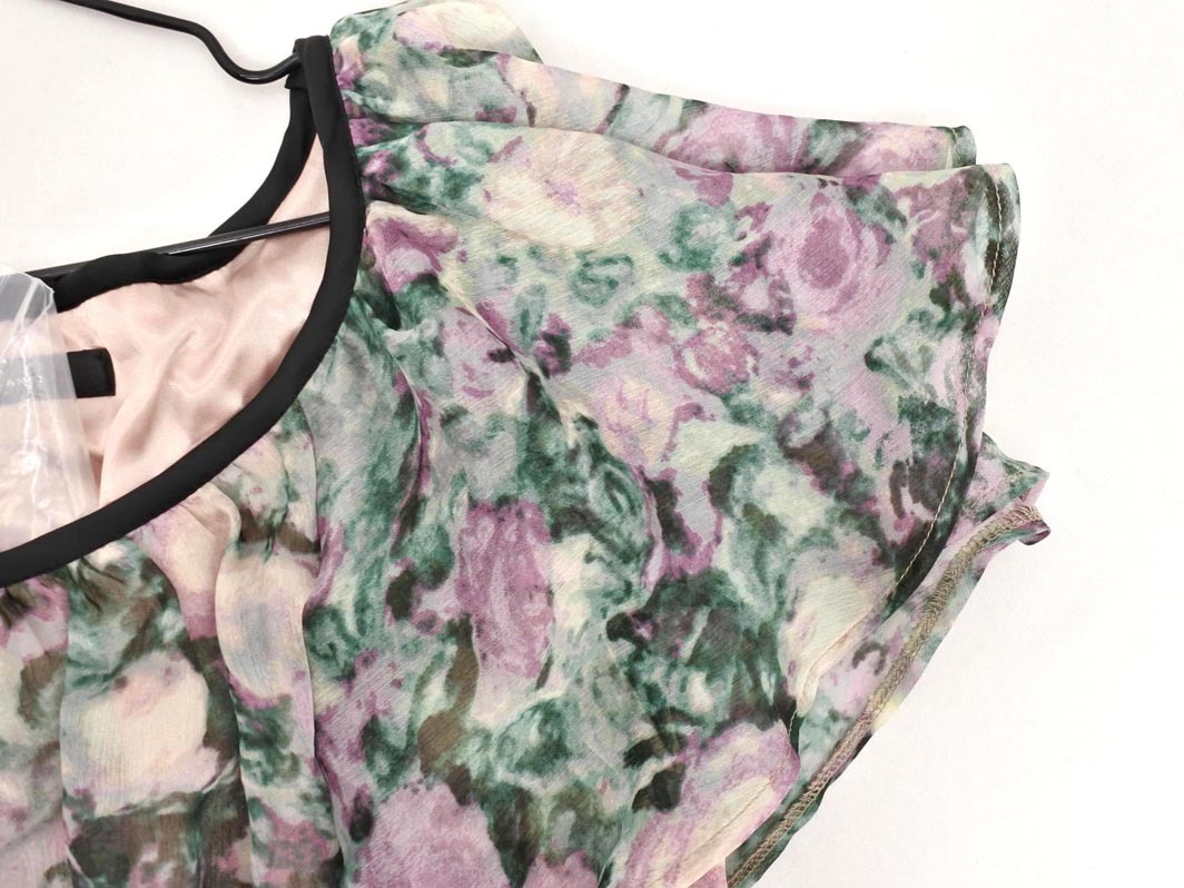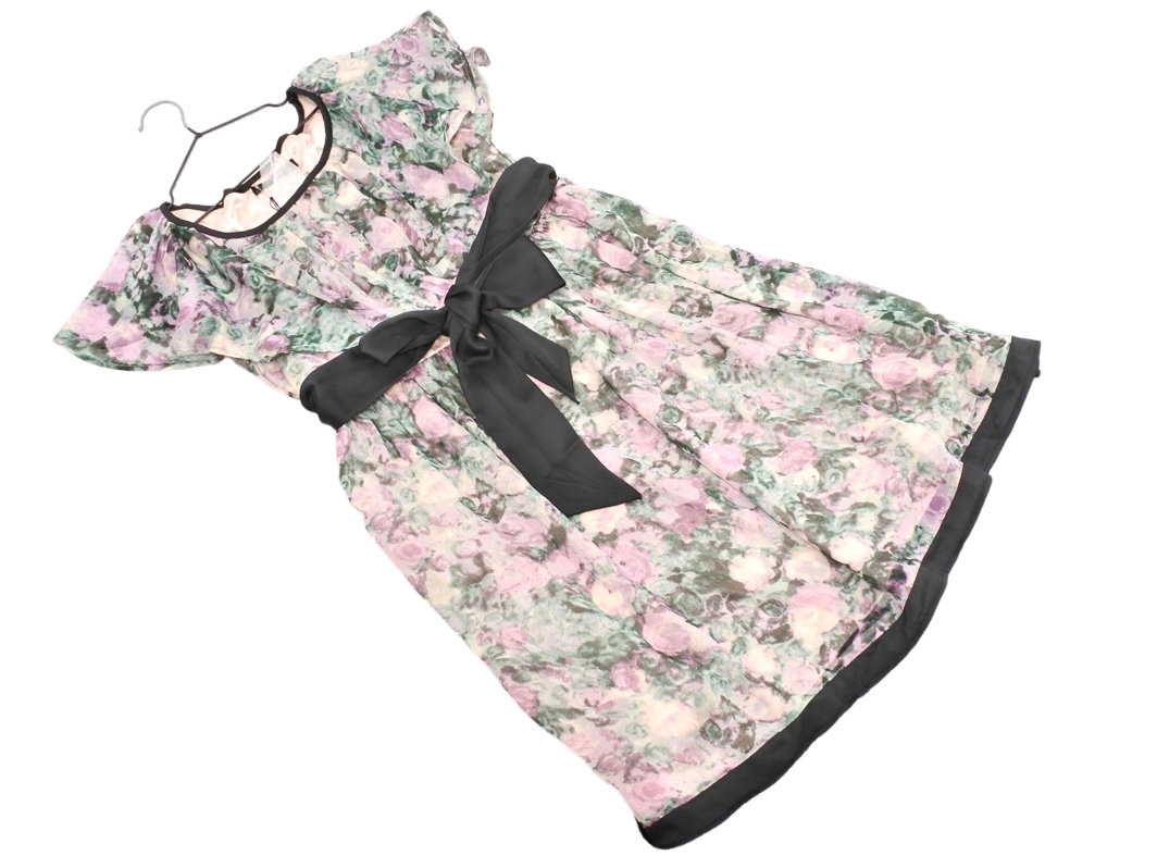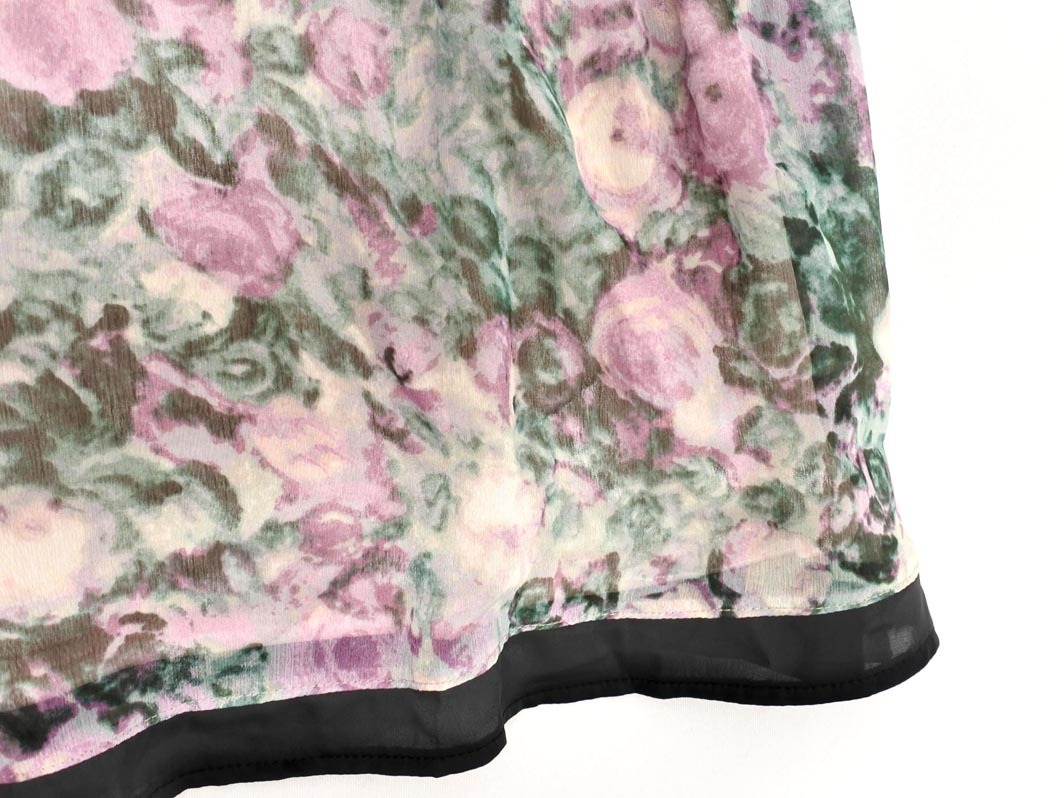 ■新品 INTERPLANET インタープラネット シフォン 花柄 Aライン ワンピース size02/ピンクx緑 ■◆ ☆ ffb2 レディース
