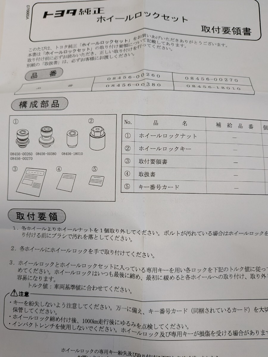 【トヨタ純正ホイールロックセット】1台分の出品です