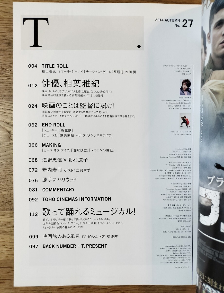 T. 2014年秋号 No.27 相葉雅紀、亀梨和也、福士蒼汰、本田翼、広瀬すず