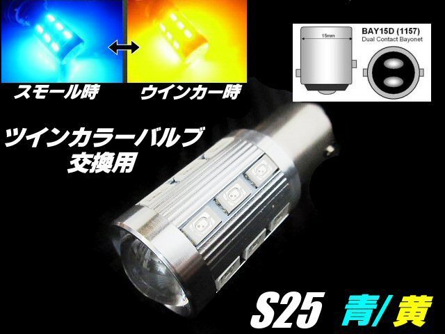 Product name: 12V/24V 兼用 改良型 ウイポジ ツインカラー バルブ 交換用 S25 BAY15D LED 青/黄 ウィンカーポジション 橙 トラック ブルー アンバー B