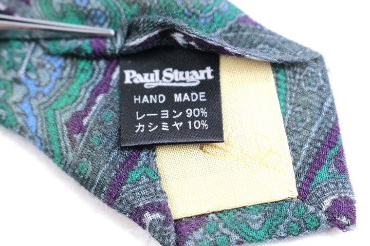 ポールスチュアート ブランド ネクタイ カシミヤ ハンドメイド ペイズリー柄 エスニック柄 PO メンズ グリーン PAUL STUART