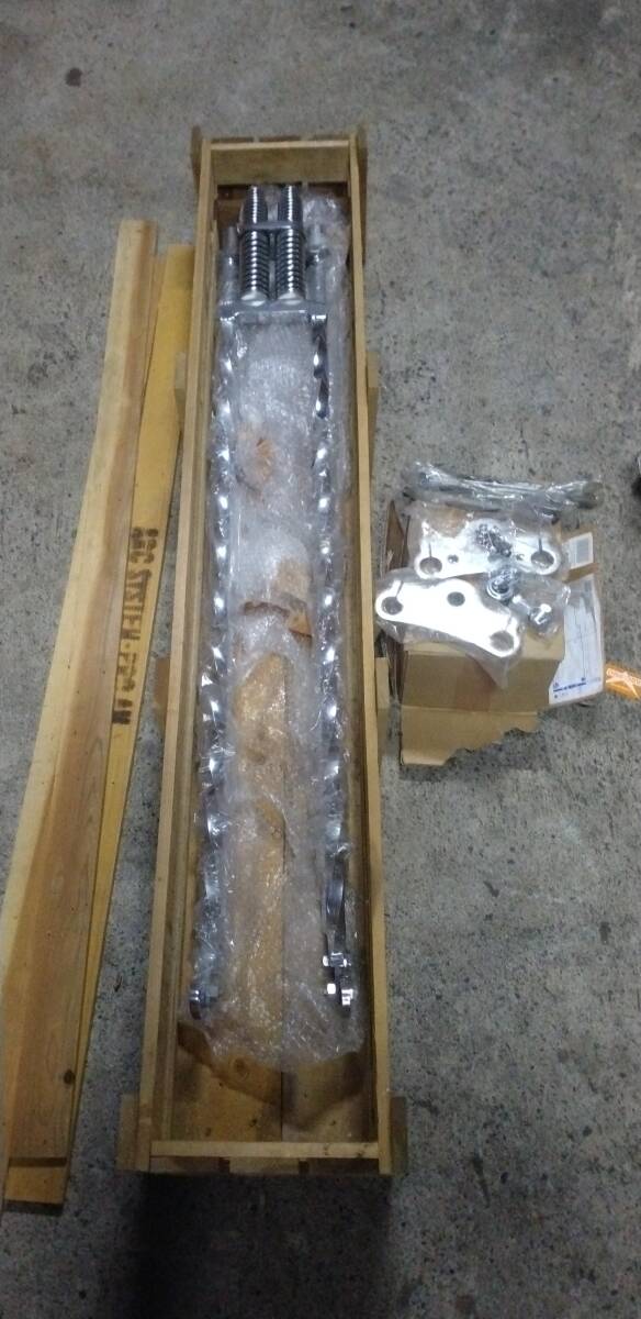 ※ステムは1インチのアクスルシャフトは15.8ミリになりブレーキ用のトルクロッド用のボルト穴ネジは10mmボルトになります。アクスルからトップまで130cm、フロントレグのアンダーからアクスルまで105cm、アンダーブラケット、トップブラケットの取付はスポーツスターの39ミリフォークと同じ原理になるので宜しくお願いします。