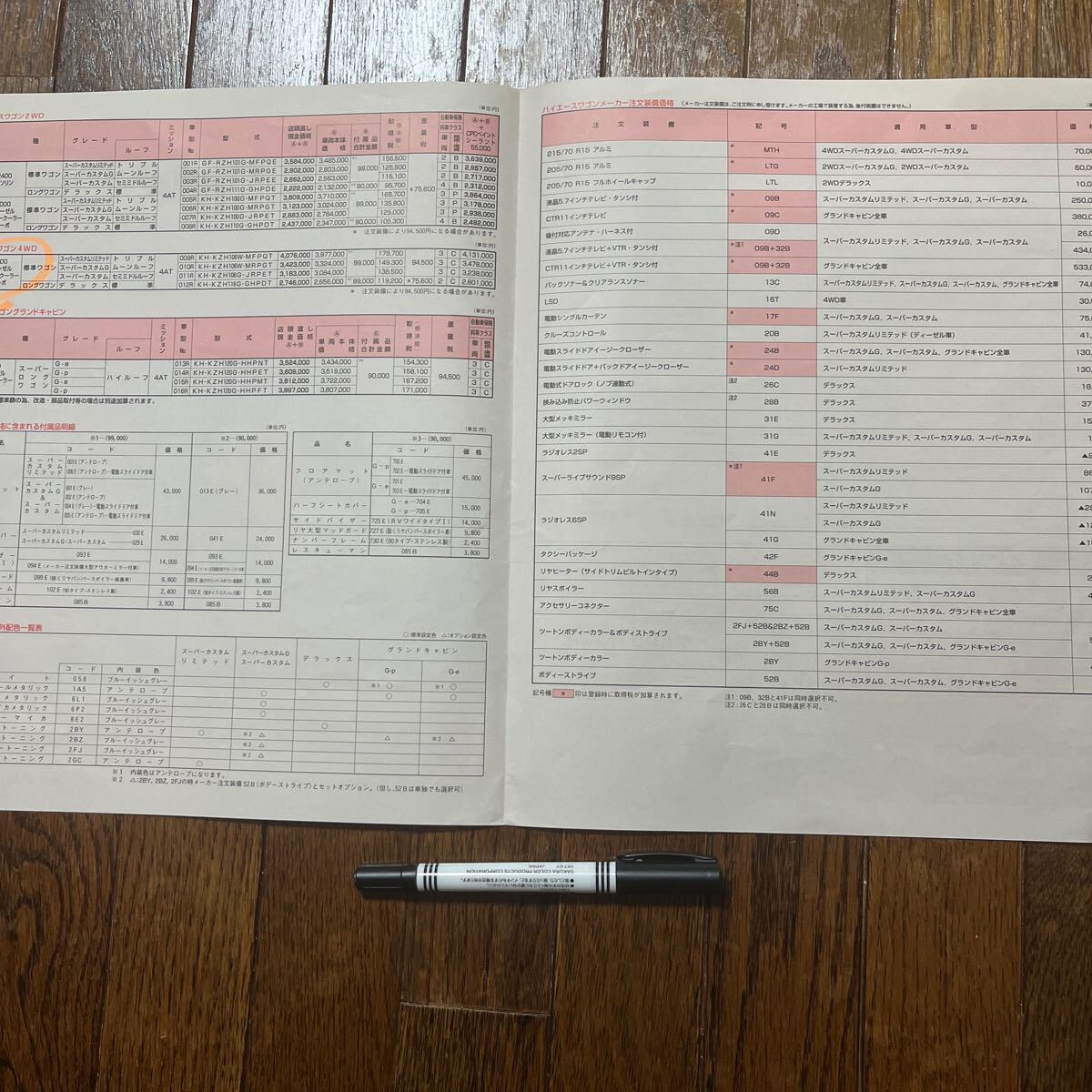 超美品 ハイエースワゴン カタログ 1999年◆価格表/用品カタログ◆バン&コミュータ価格表◆ハイエースバン/コミューター カタログ HIACE