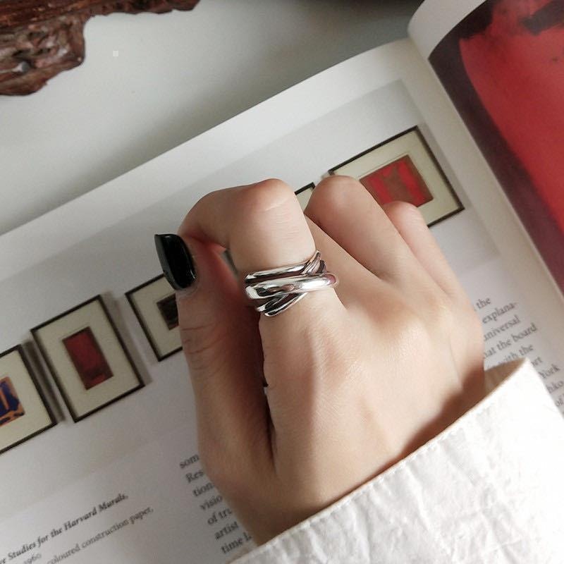 エレガントで洗練されたクロスデザインのシルバーリング(オープンリング)です。