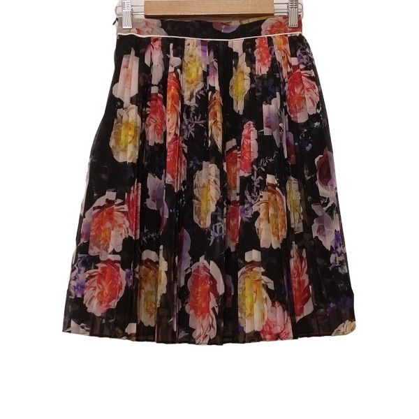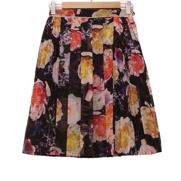 Product name: ポールスミス PaulSmith スカート サイズ38 L - 黒×ライトピンク×マルチ レディース ひざ丈/花柄/プリーツ/シースルー/フォトプリント