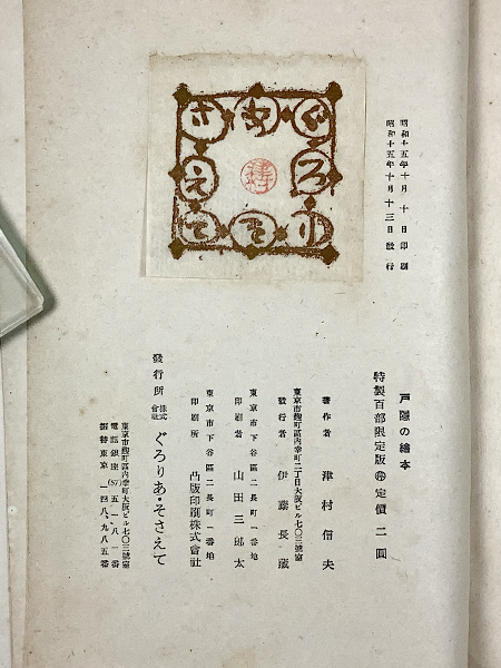 昭和15年10月、ぐろりあ・そさえてより100部限定発行。該当品にはシミ、スレがあります。古物のため基本的に返品は不可とさせて戴きましたが、説明文と画像から判別できない、重大な不備があった場合はお受けします。