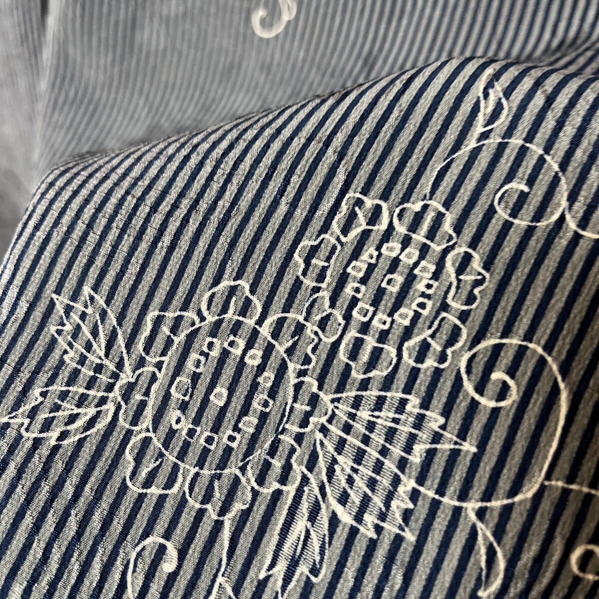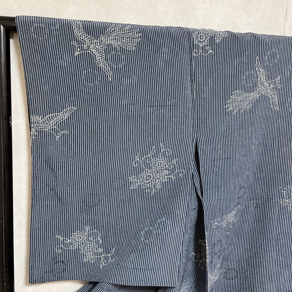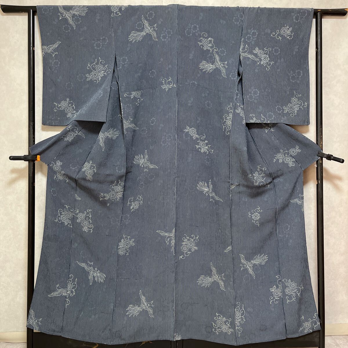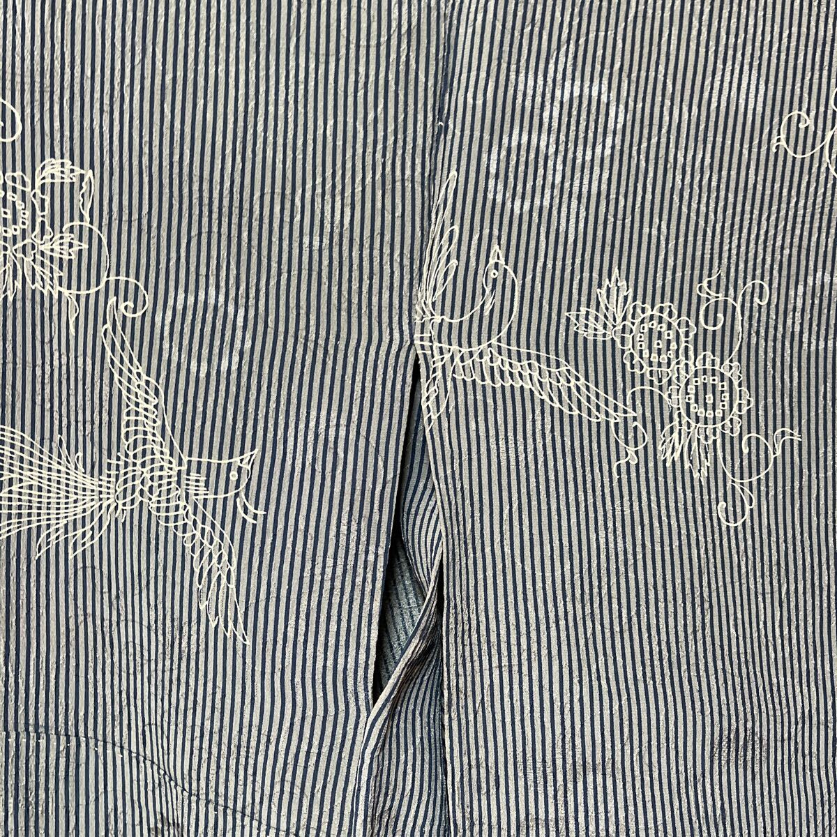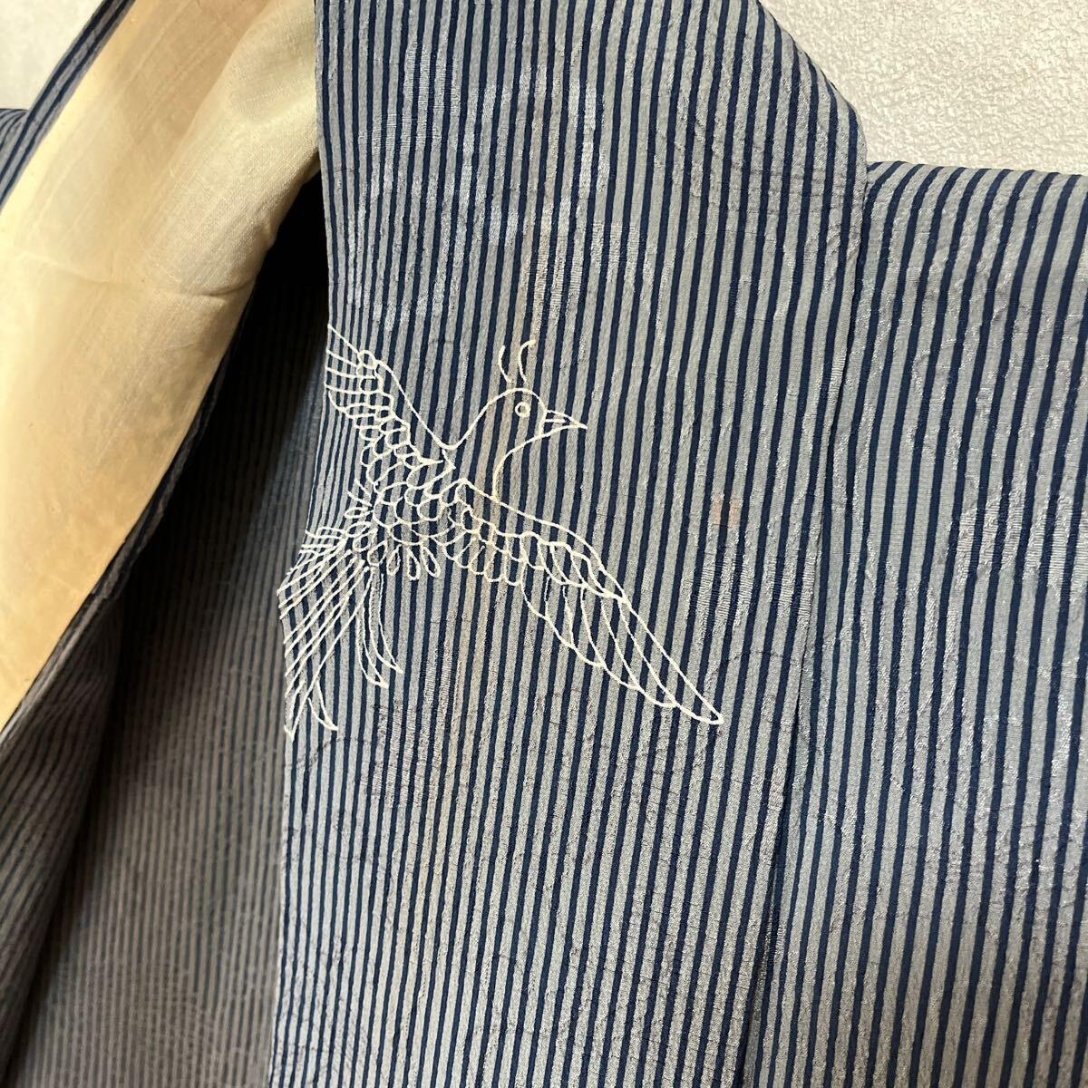 アンティーク 着物 単衣 縦縞 ストライプ 昭和レトロ 大正ロマン モダン リメイク 和洋折衷コーデ 絹 正絹 き18-5k