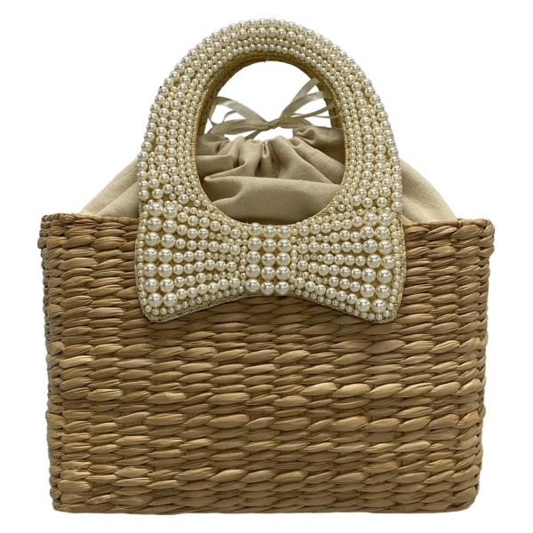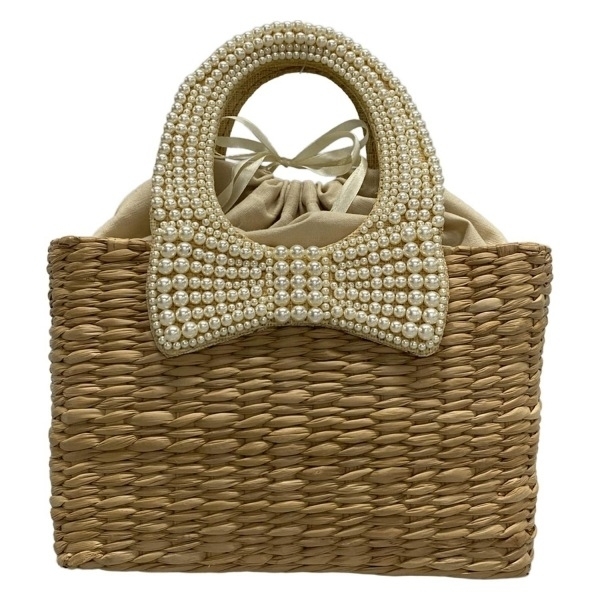 アナトリエ anatelier ハンドバッグ - ベージュ×白 パール/リボン 美品 バッグ