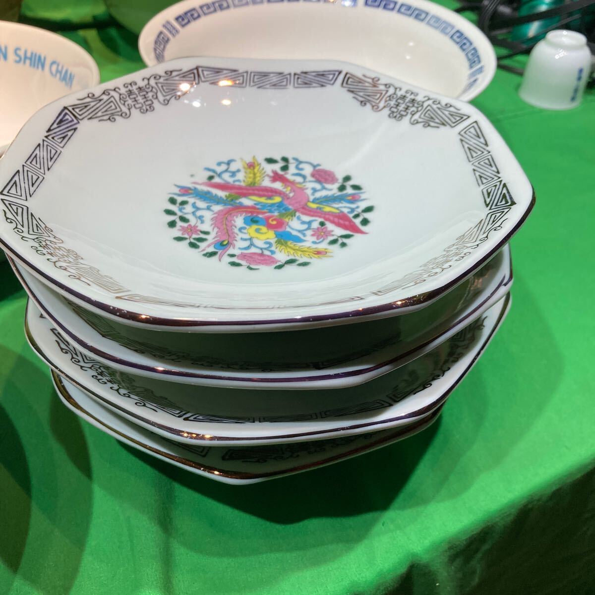 昭和レトロ 食器 ラーメン鉢 ラーメン皿 どんぶり チャーハン皿 中華食器 陶器 鳳凰 龍 中古品 保管品