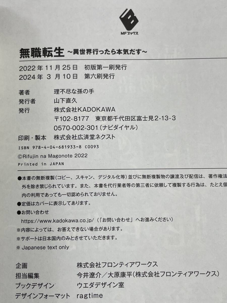 Product name: 無職転生 ~異世界行ったら本気だす~ 26 令和6年 2024年発行初版【K161390】