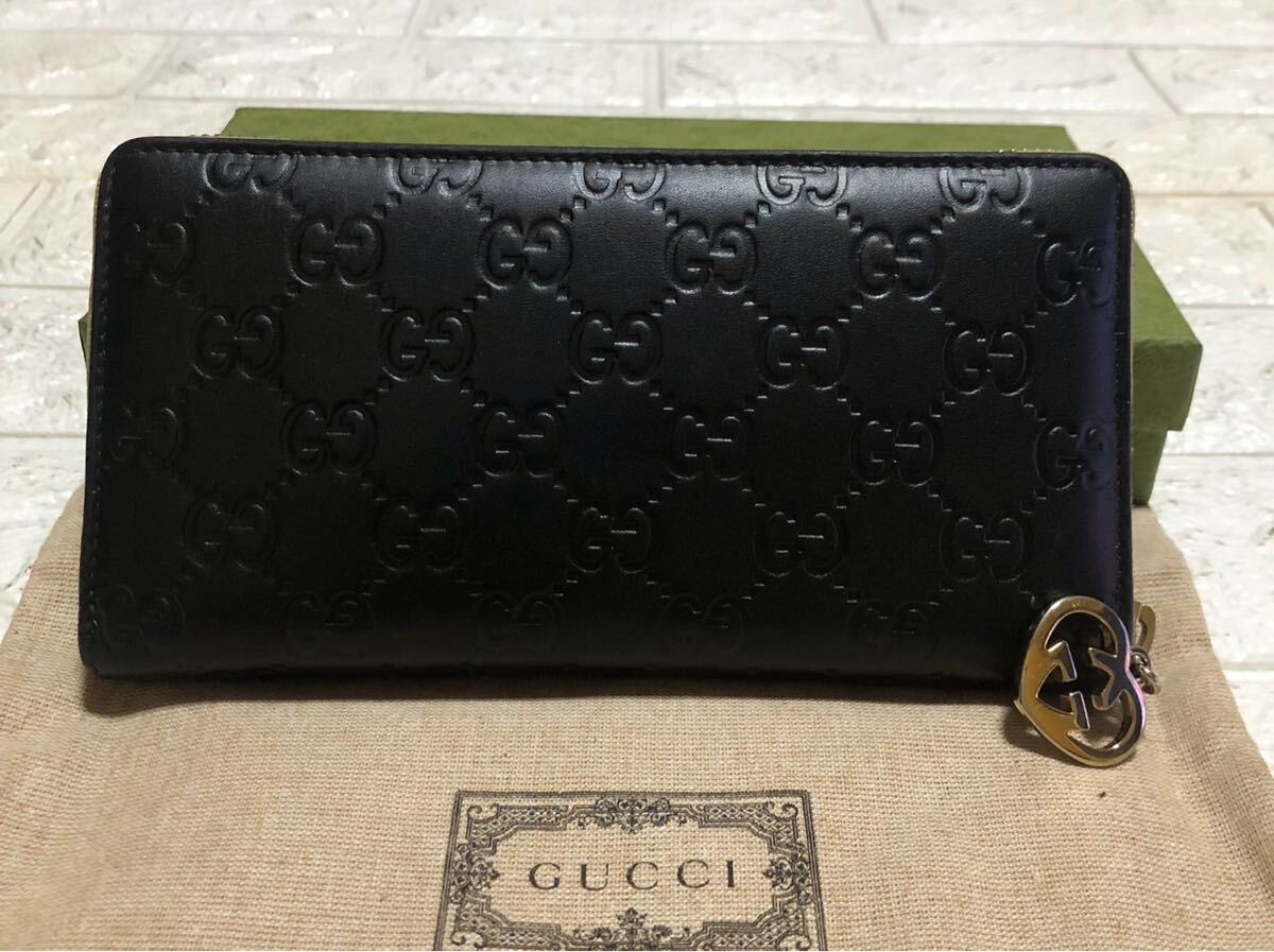 GUCCIシマGGチャームラウンドジップ長財布